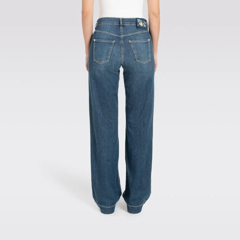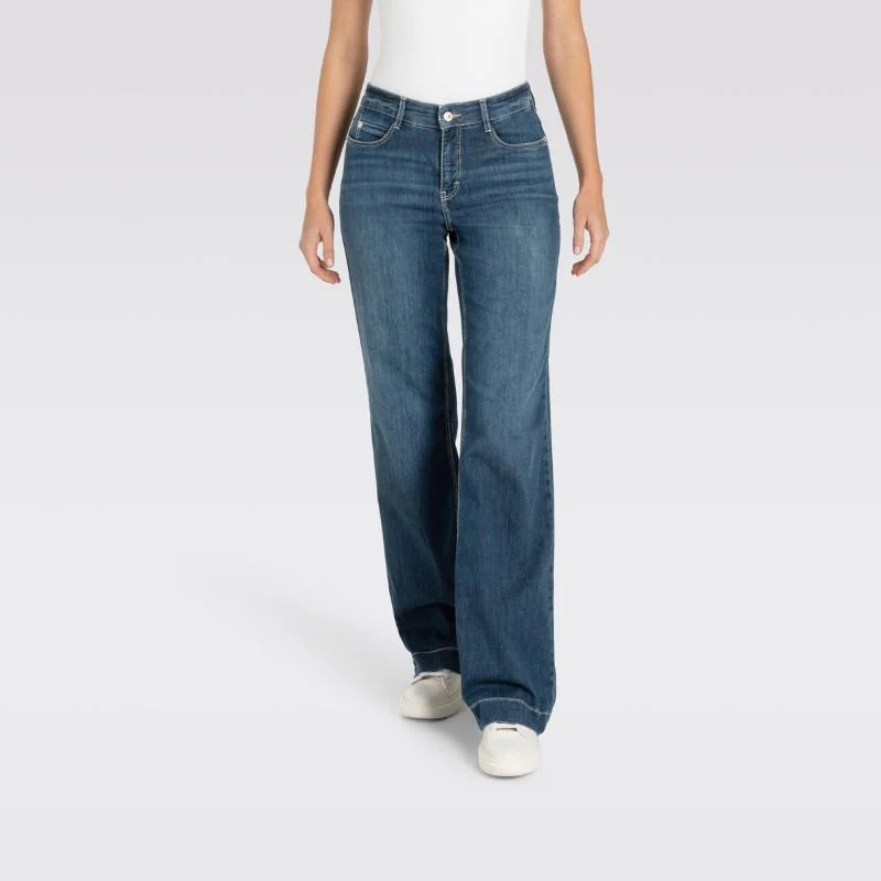 Authentic Dark Blue jeans Dream Wide van MAC voor dames. Deze jeans combineert een moderne wide fit met rechte, wijde pijpen en een prettige taillehoogte. Het model biedt extra ruimte bij de billen en dijen, waardoor de pasvorm flatterend en comfortabel is.