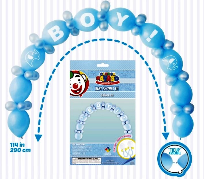 Inhoud: 64 ballonnen (6x blauwe koppelballon met print (nr.12/30cm), 4x blauwe koppelballon (nr.12/30cm), 40x blauwe ballon (nr.5/30cm), 2x blauwe zeppelinballon (nr.270/5x152cm), 2x transparante ballon (nr.12/30cm), 5x gele ballon (nr.5/13cm), 5x witte ballon (nr.5/13cm)