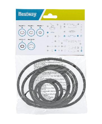Vervangende rubberen o-ringen voor Bestway zandfilters. Handige en complete set met ringen in 5 verschillende maten, alleen geschikt ter vervanging voor de 2,0 m³/u en 3,0 m³/u Bestway zandfilters.