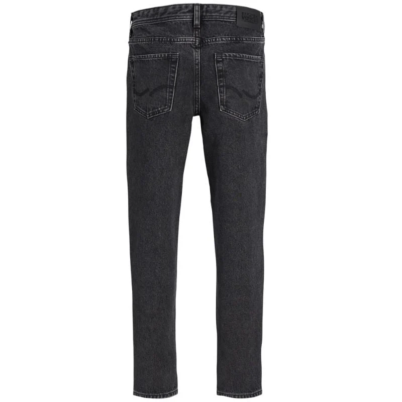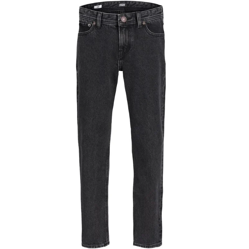 Black Denim jeans Chris Original van Jack & Jones voor jongens. Deze stoere jeans is uitgevoerd in een diepe zwarte kleur en gemaakt van stevig denim dat jarenlang mooi blijft. De broek heeft een comfortabele pasvorm die voldoende bewegingsvrijheid biedt, ideaal voor dagelijks gebruik. Dankzij de combinatie van katoen met een beetje stretch voelt de jeans soepel aan en blijft hij de hele dag goed in model. De knoop- en ritssluiting en de praktische zakken zorgen daarbij voor een klassieke en functionele uitstraling.