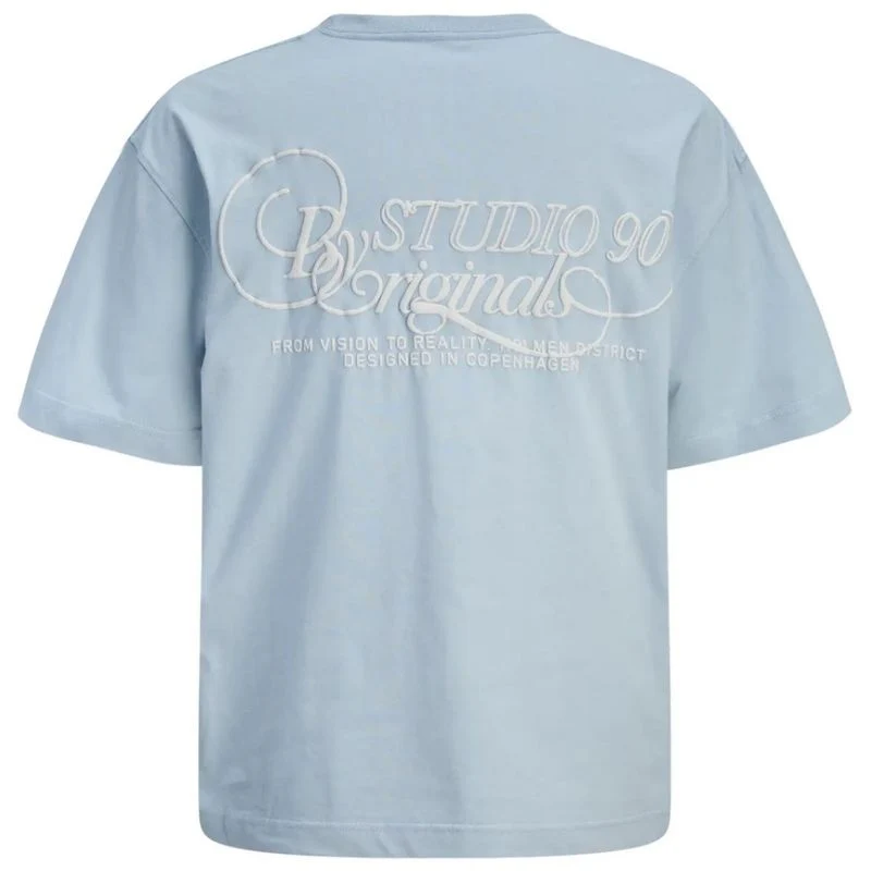 Blauw crew neck t-shirt Niagara Typo van Jack & Jones voor jongens. Dit t-shirt heeft een stoere en moderne uitstraling en is perfect voor dagelijks gebruik. De frisse blauwe kleur geeft het shirt een eigentijdse look en laat zich makkelijk combineren met andere items uit de garderobe. De subtiele print op de borst en de opvallende backprint zorgen voor een speels en herkenbaar detail zonder te overheersen.