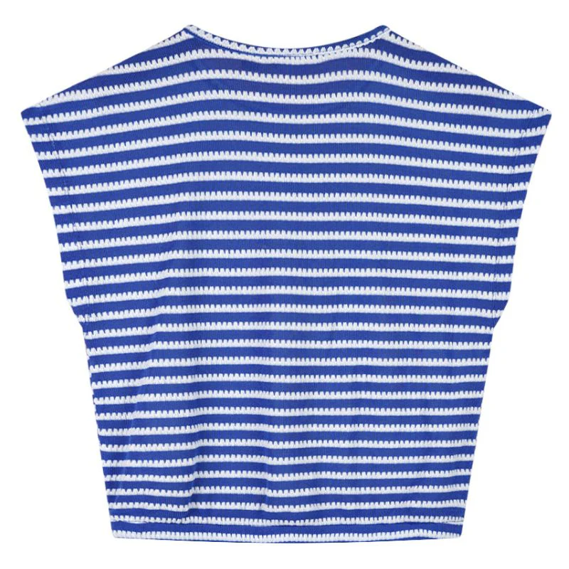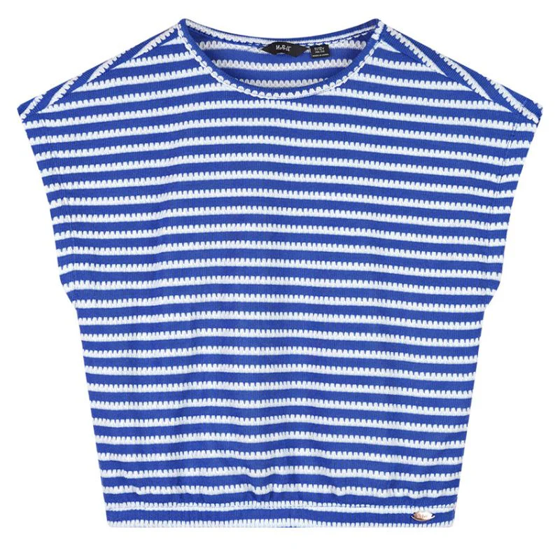 Blauw gestreepte top Kawai van NoBell voor meiden. Deze top is voorzien van een ronde hals en korte mouwen. De top is blauw met wit gestreept. Gemaakt van 96% polyester en 4% elastan. De top is leuk om te combineren met de bijpassende items uit de collectie van NoBell en heeft elastische boorden voor de perfecte pasvorm.