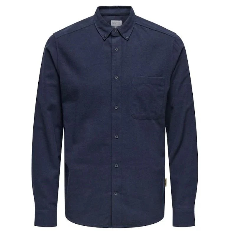 Blauw shirt Gudmund van ONLY & SONS voor heren. Deze blouse is voorzien van een klassieke kraag en lange mouwen. De blouse heeft een blauwe kleur en een steekzak op de borst. Gemaakt van 100% katoen. De blouse is te sluiten via knopen. De blouse is makkelijk te combineren en geschikt voor elke gelegenheid.