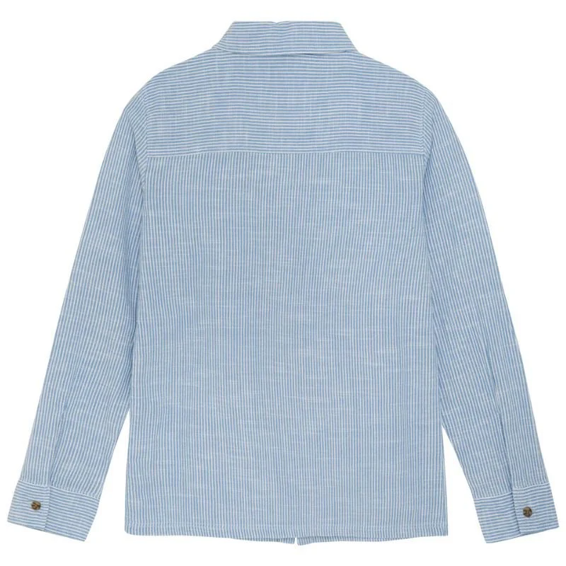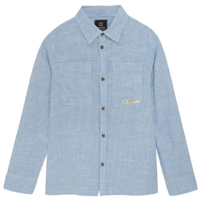 Blauw shirt Linen Stripe van Indian Blue Jeans voor jongens. Deze blouse is voorzien van een klassieke kraag en lange mouwen. De blouse heeft een blauw met witte streepprint en steekzakken op de borst. Gemaakt van 100% katoen. De blouse is te sluiten via knoopjes en heeft een rechte valling.