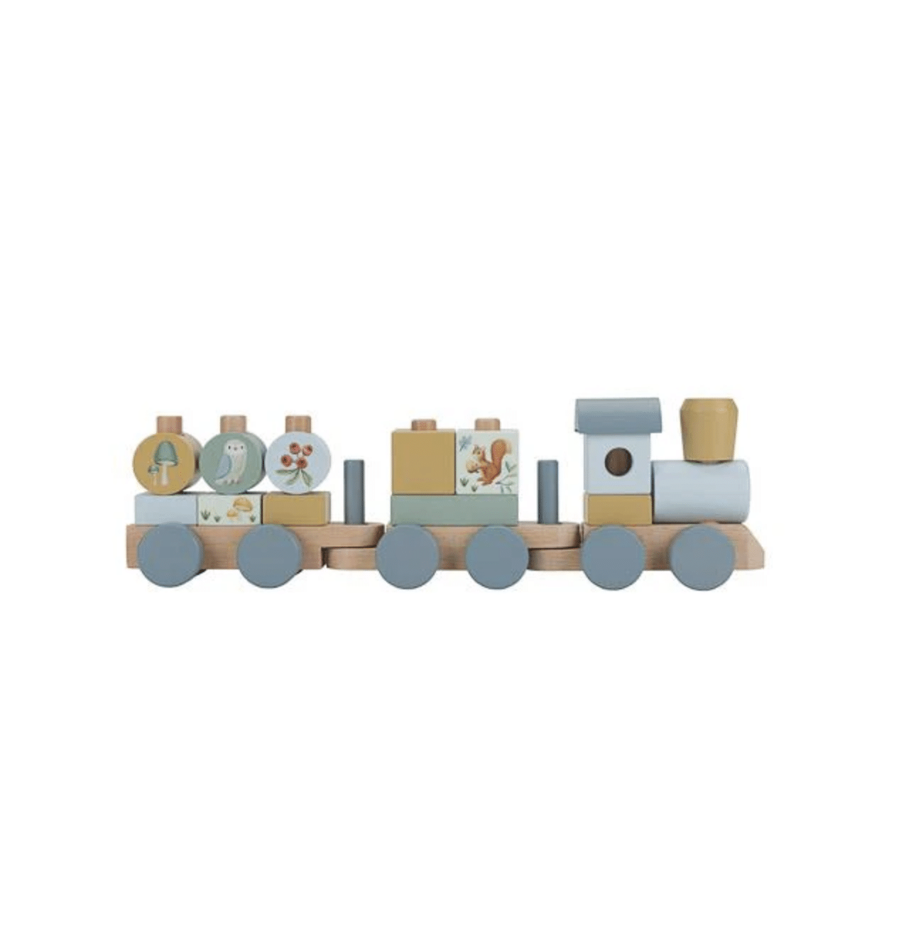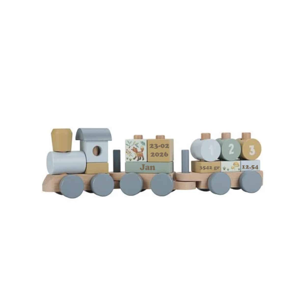 Maak de Blokkentrein trein Blauw Forest Friends met naam persoonlijk en geef een duurzaam, origineel en blijvend cadeau. Bestel nu en verras elk kindje met dit unieke speelgoed!