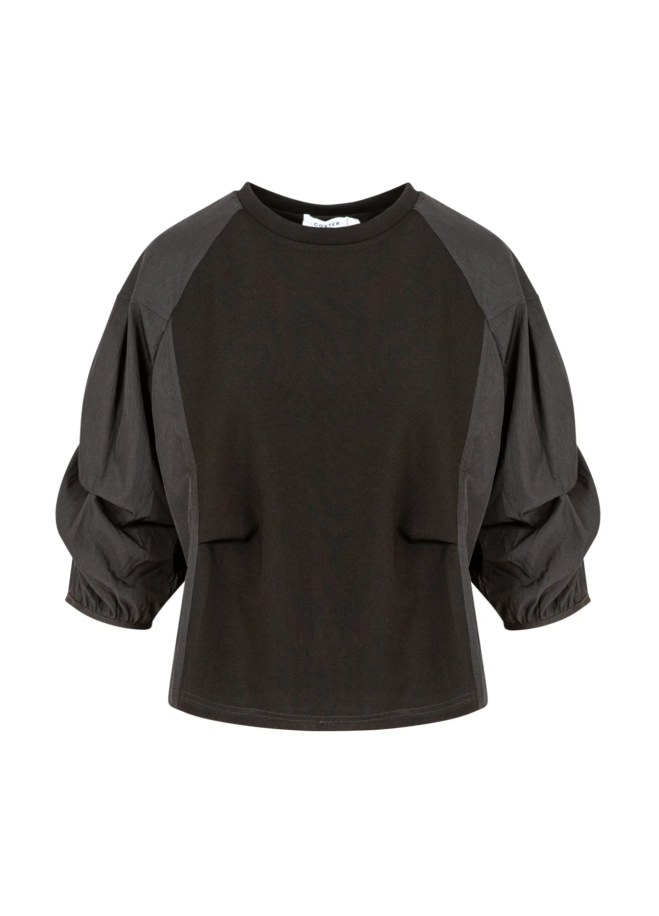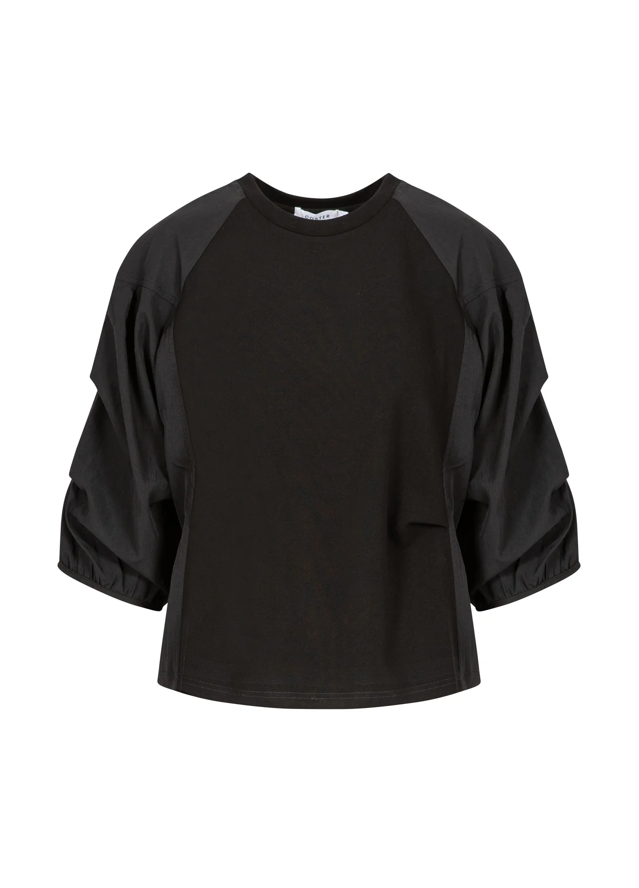BLOUSE MET GEMENGDE PUFFY MOUWEN – Black