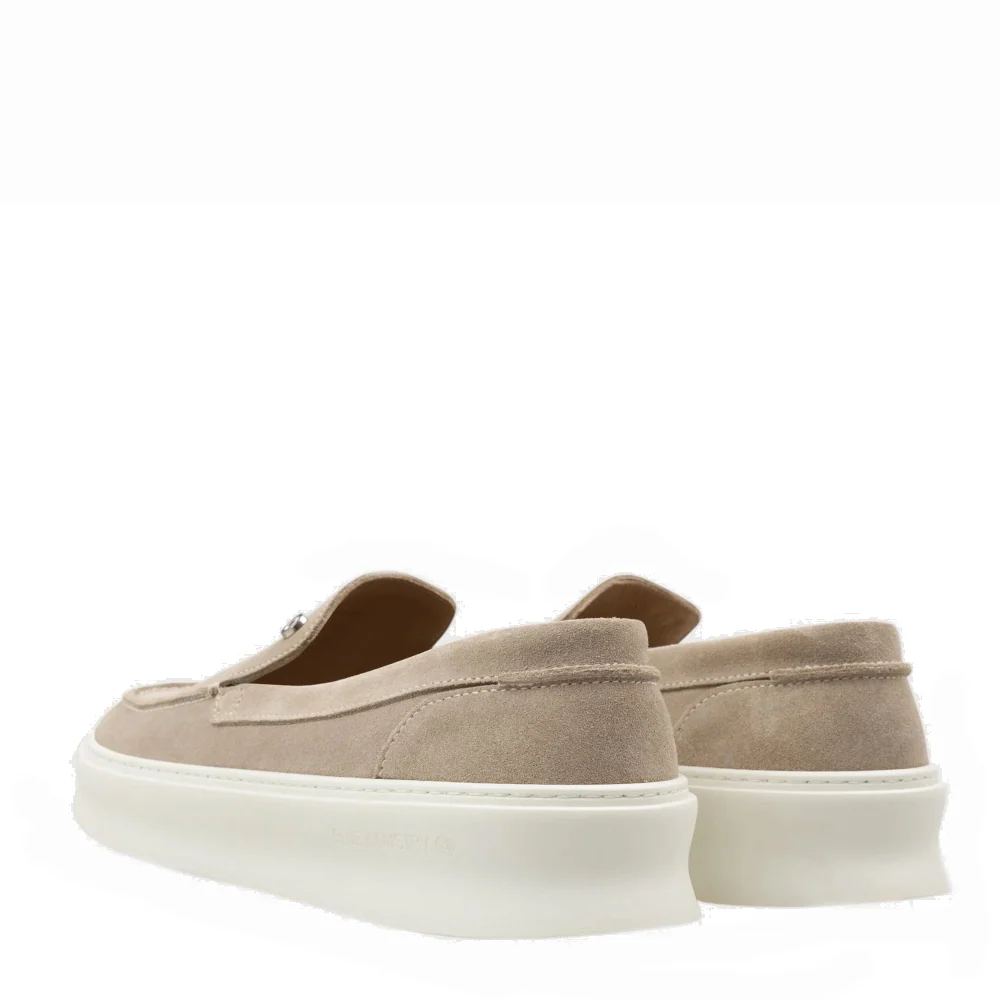 Deze loafer sneaker is uitgevoerd met een suède bovenwerk en een slip-on constructie. Het model heeft een minimalistisch ontwerp met een strakke afwerking. De stevige rubberen outsole zorgt voor grip en stabiliteit tijdens het dragen. Door de lichte opbouw is de schoen geschikt voor dagelijks gebruik. Afgewerkt met subtiele branding die het ontwerp rustig houdt.