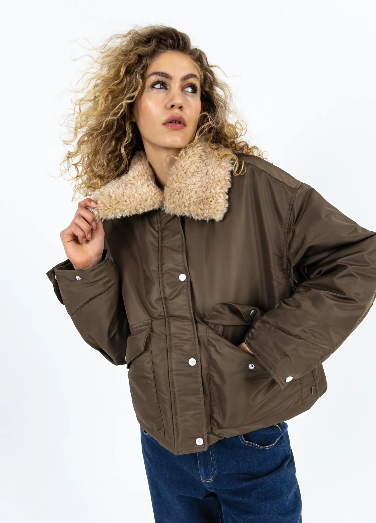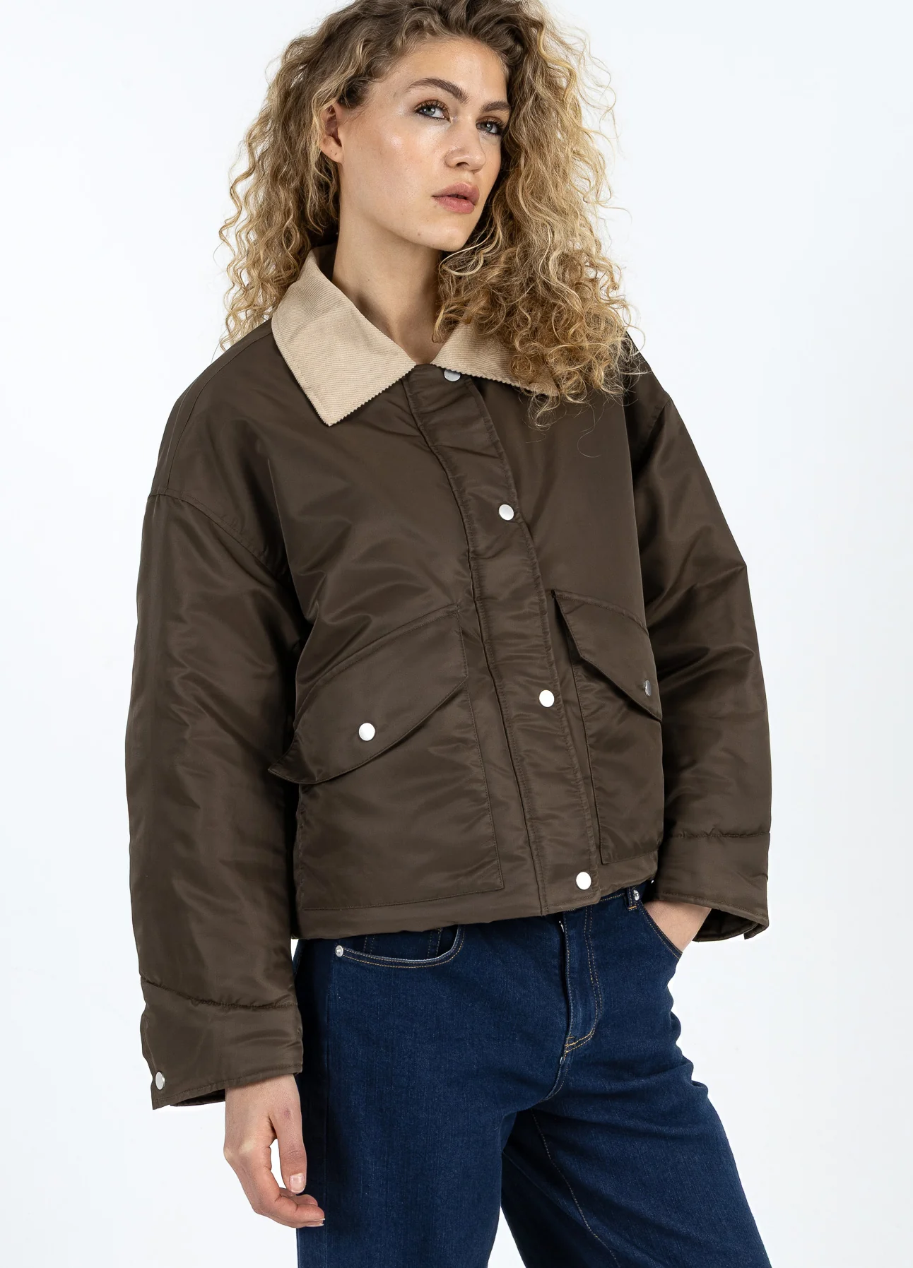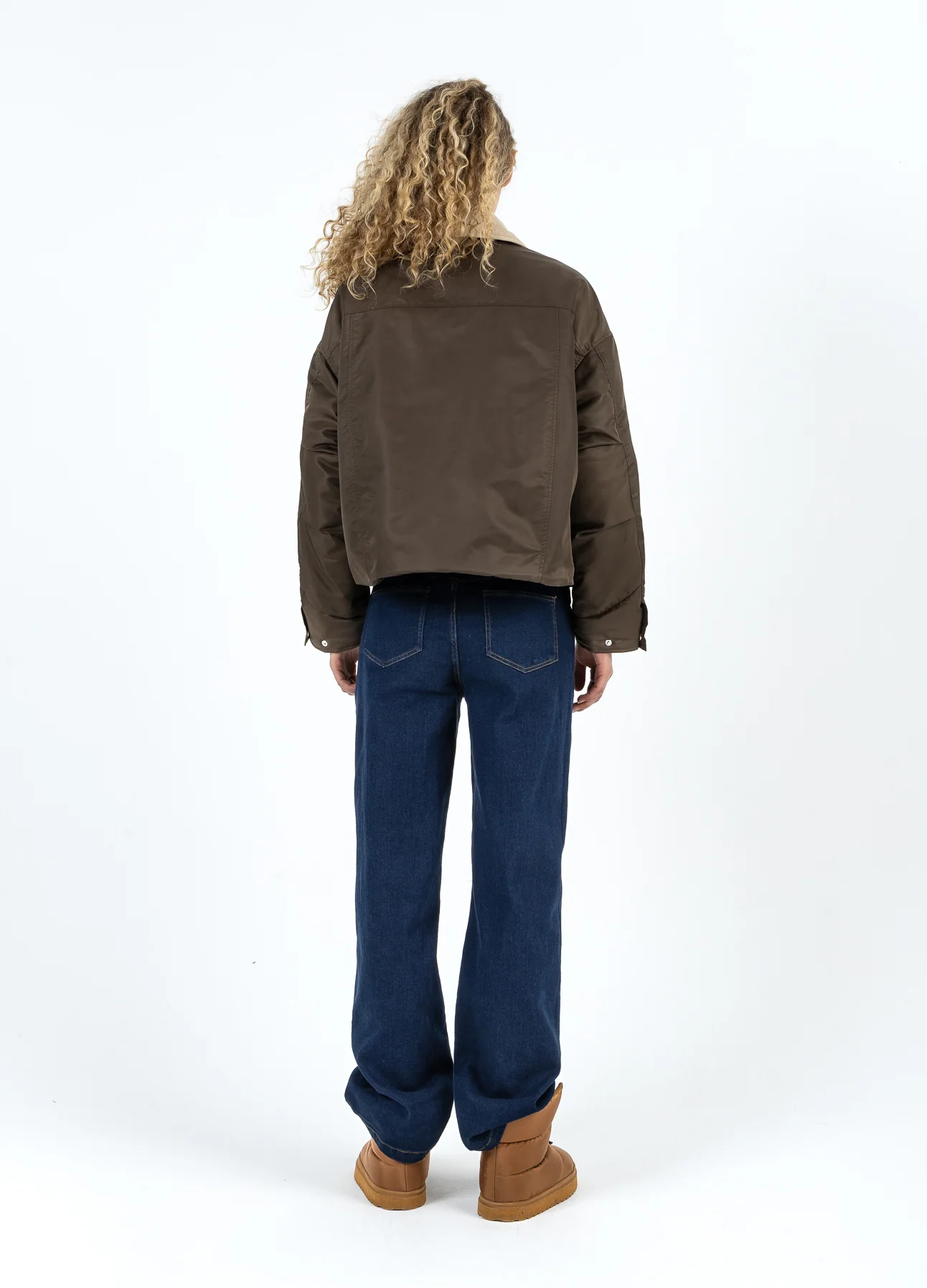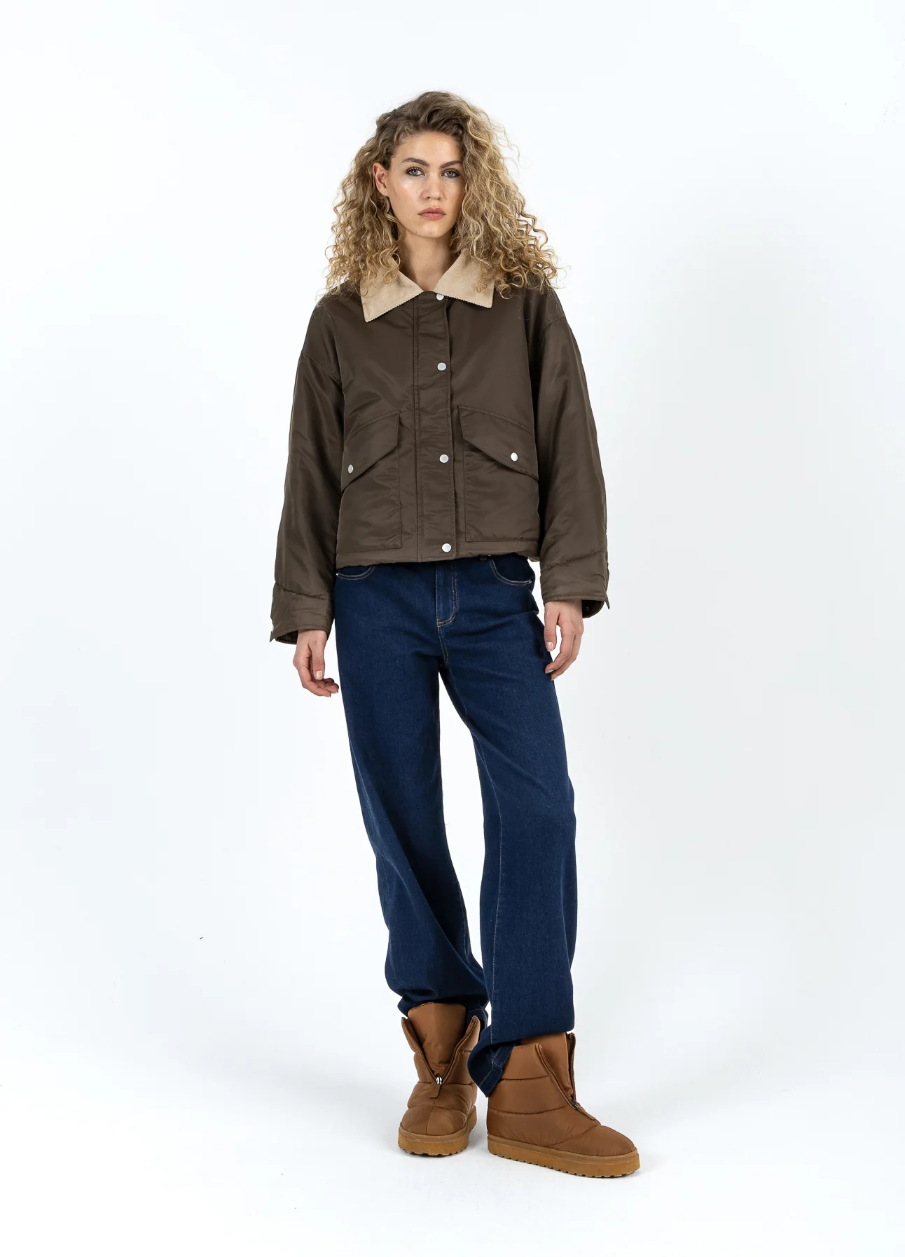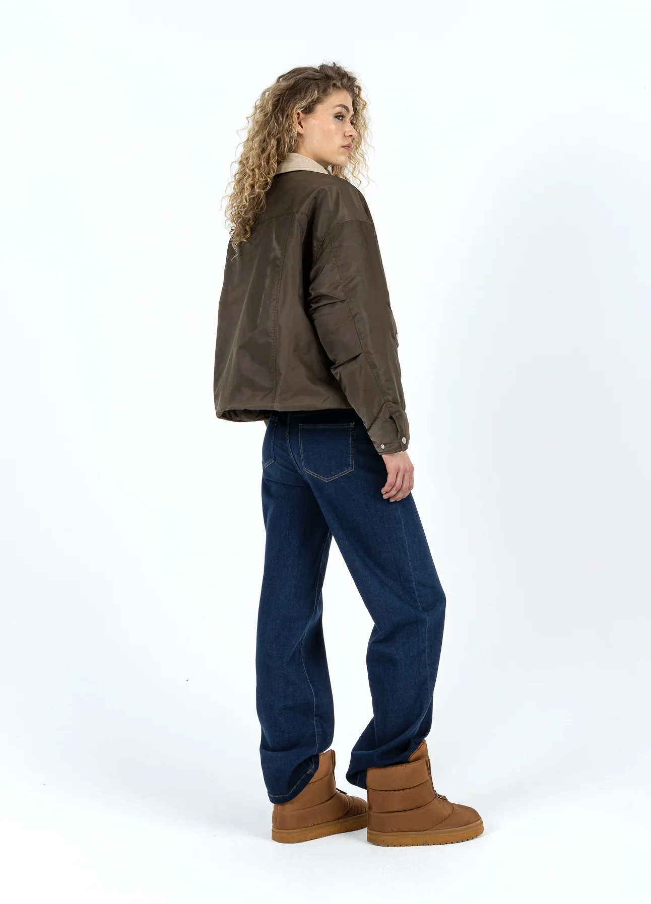 Het model is 182 cm lang en draagt maat S. Haar busteomvang is 82 cm, taille 61 cm en heupen 93 cm.
