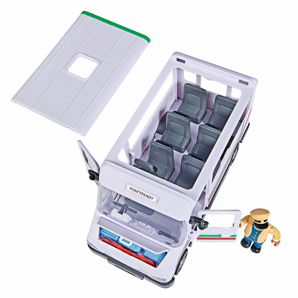 Trevors bus van Brandweerman Sam, de motorkap opent bij crashen, deuren en dak kunnen open, inclusief Trevor figuur en vele accessoires, 21 cm. Is gemaakt van kunststof en wordt verpakt in windowbox. Geschikt voor kinderen vanaf 3 jaar.