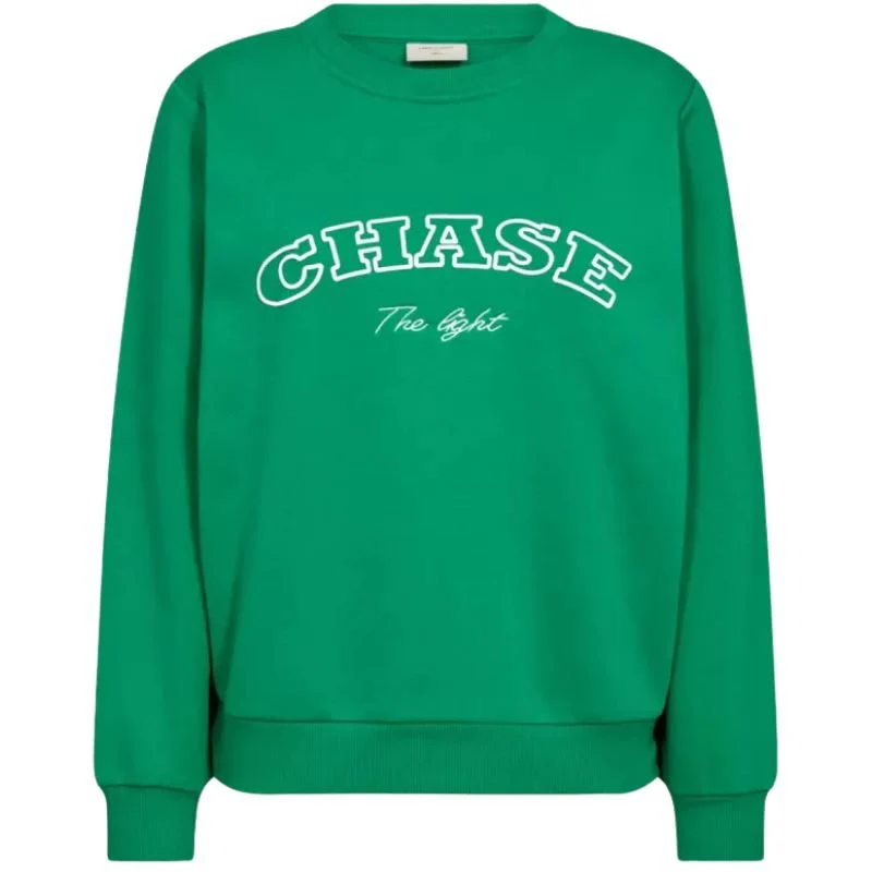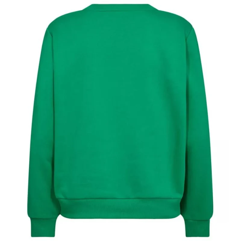 Bright Green met offwhite print pullover Kamela van Freequent voor dames. Deze frisse en moderne trui in een opvallende groentint is ontworpen om comfortabel te dragen en toch een stijlvolle uitstraling te behouden. De pullover heeft een zachte feel en een regular fit die soepel om het lichaam valt zonder te strak te zitten. De ronde halslijn en ribboorden zorgen voor een klassieke afwerking die goed past bij zowel casual outfits als meer verzorgde looks. De offwhite rubber print op de borst geeft de sweater een sportief accent en maakt het geheel speels en eigentijds.