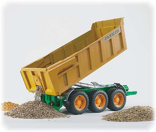 De 3-assige aanhanger van Joskin is de aanhanger van Bruder voor het zware werk. Door de 3 assen kan hij het zware transport doen. De assen bewegen los van elkaar, waardoor de aanhanger altijd grip blijft houden op onregelmatig terrein. Om alle geladen producten uit te laden is het mogelijk voor de aanhanger om volledig te kiepen. De aanhanger van Joskin kan gekoppeld aan alle speelgoetrekkers uit de Profi serie van Bruder. Door het gebruik van duurzame materialen is de 3 assige aanhanger van hoge kwaliteit.
