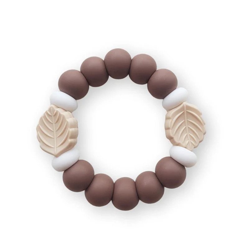 Bruine chewie Cool Leaf van Chewies & More voor baby’s. Deze Cool Leaf Chewie is heerlijk voor het tandvlees van jouw kleintje. Biedt extra verlichting bij doorkomende tandjes. Je kunt deze chewie maximaal 1 uur voor gebruik in de koelkast leggen, voor extra verkoeling. Voorzien van kleinere kralen en lichtgewicht, hierdoor kan jouw kleintje deze chewie goed vasthouden. Geschikt vanaf 0 maanden en ongeveer 8,5 cm.