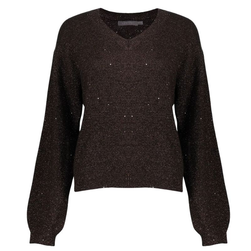 De bruine lurex v-hals pullover 54542 van Geisha is de ideale keuze voor vrouwen die houden van tijdloze klasse met een sprankelende twist. Perfect voor zowel dagelijks gebruik als voor een avondje uit. Bekijk de Geisha pagina voor meer items van Geisha.