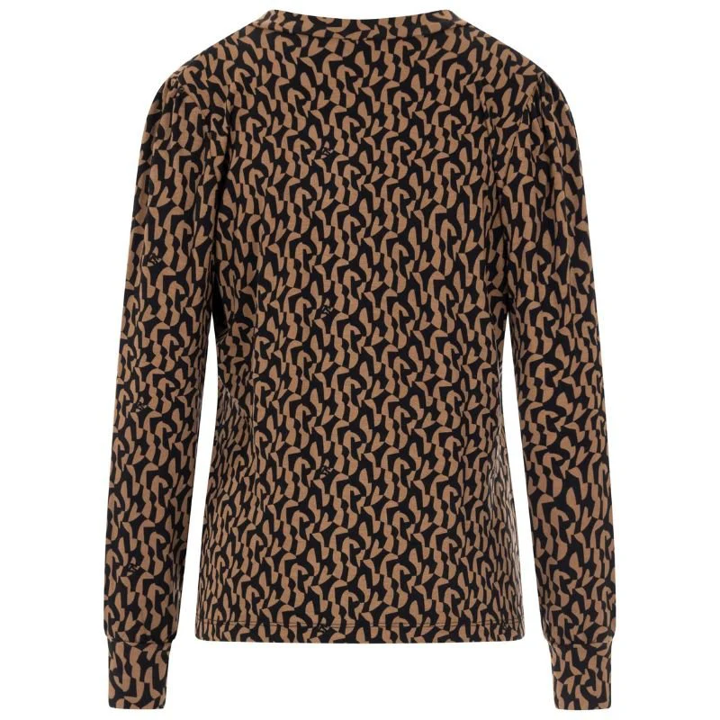 Camelbruin met zwart geprinte blouse Cindy