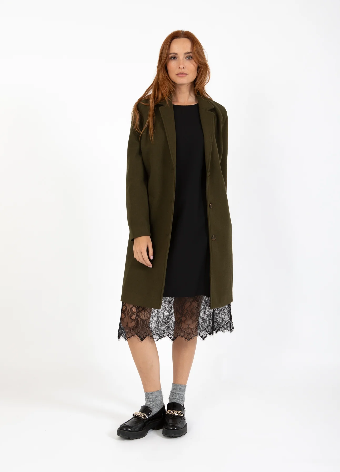 Het model is 163 cm lang en heeft maat 36. Ze meet 88 cm over de borst, 70 cm over de taille en 80 cm over de heup.