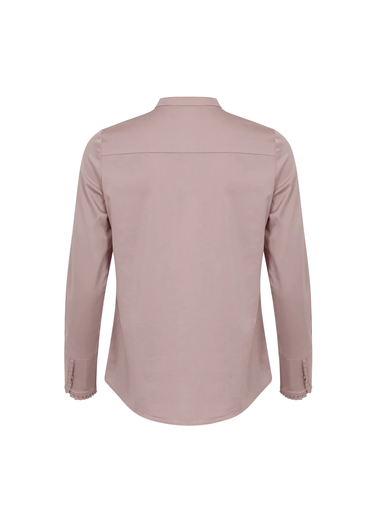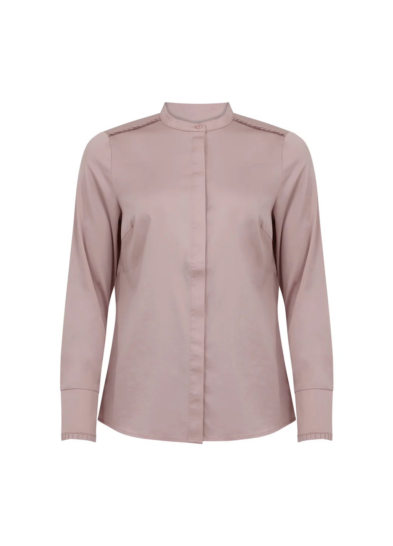 Slimfit shirt with toned buttons and a Mandarin collar. The feminine fit of the shirt can be styled with a blazer and a pair of jeans.