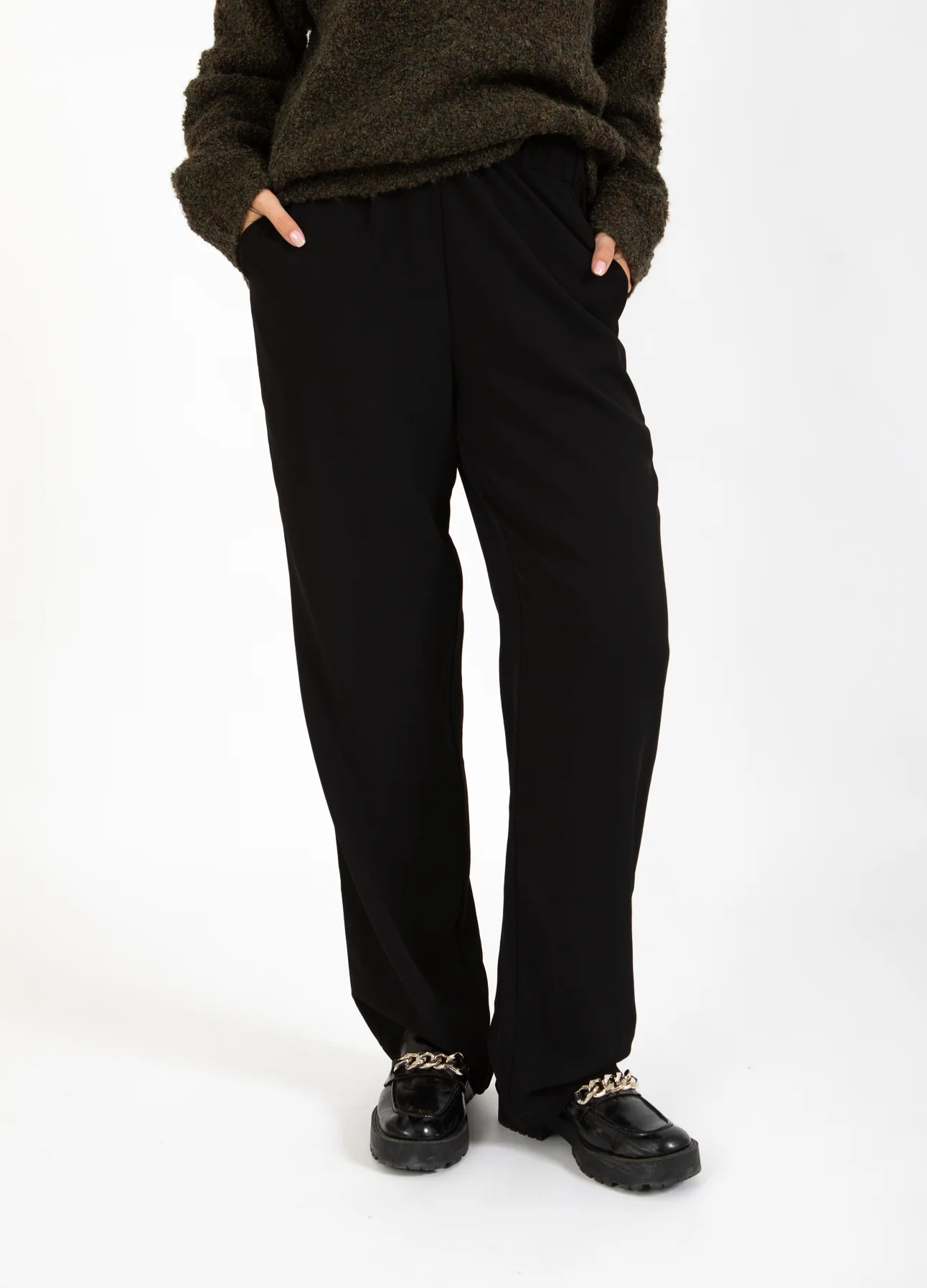 Deze luchtige broek is zowel comfortabel als stijlvol. Met hun eenvoudige ontwerp en elastische taille zijn ze perfect voor zowel casual als meer formele gelegenheden.