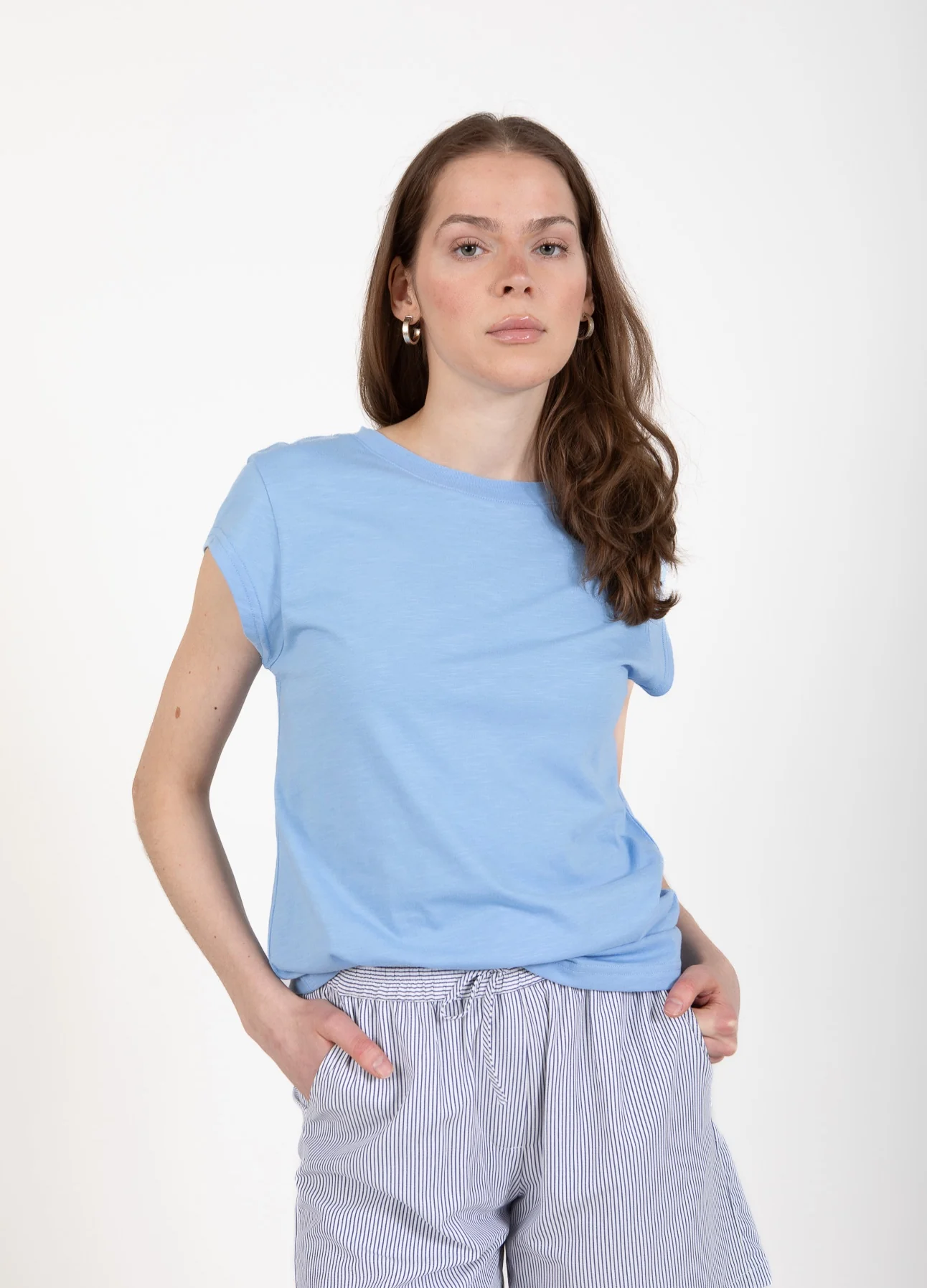 T-shirt in a sleek silhuette. Great basic t-shirt and perfect with a pair of jeans, shorts or printed skirt.
