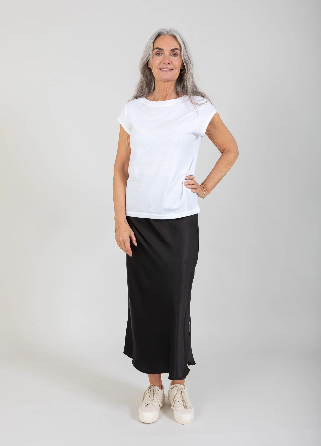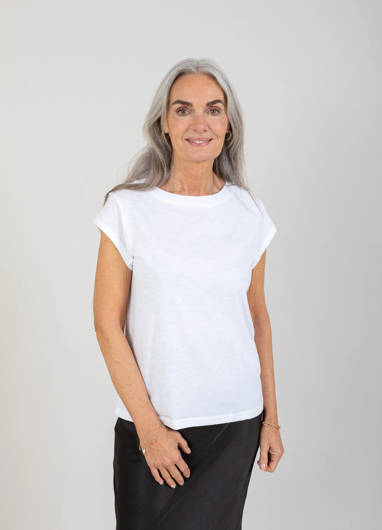 T-shirt in a sleek silhuette. Great basic t-shirt and perfect with a pair of jeans, shorts or printed skirt.