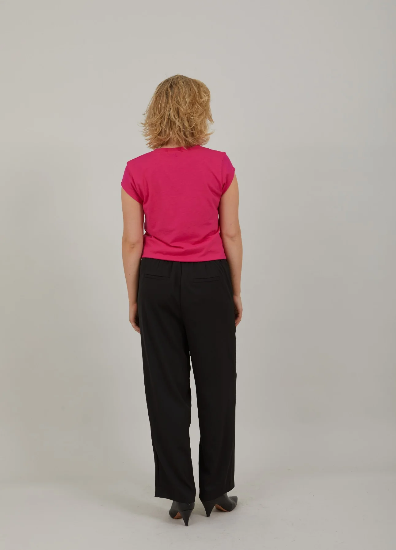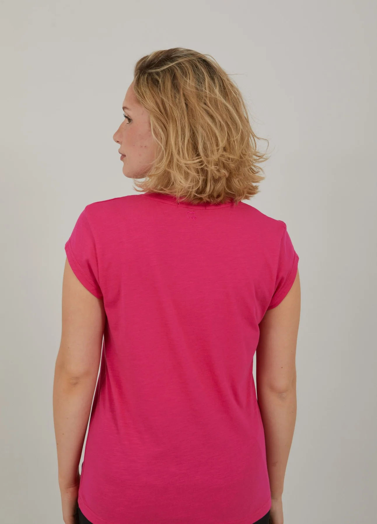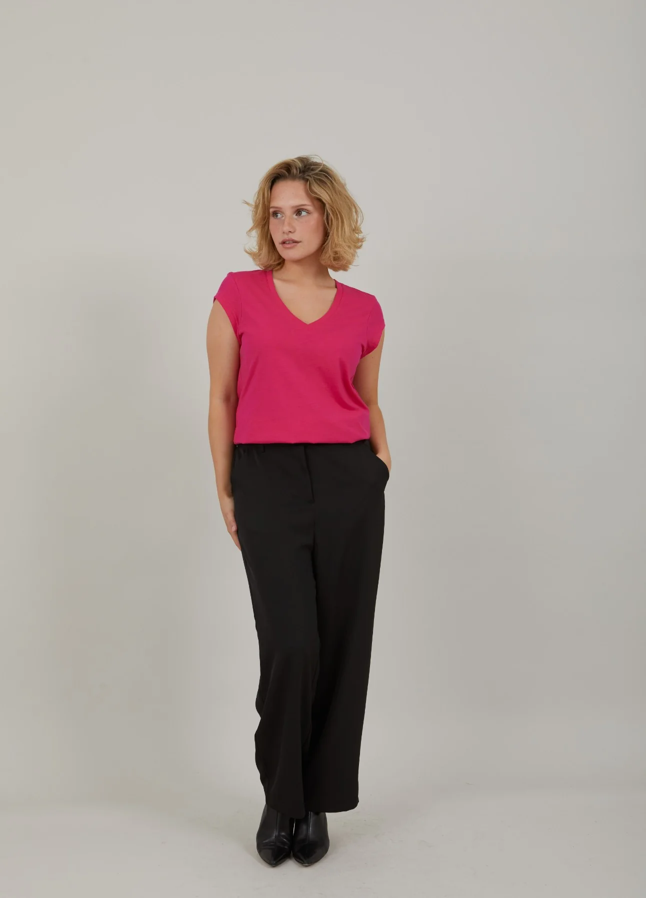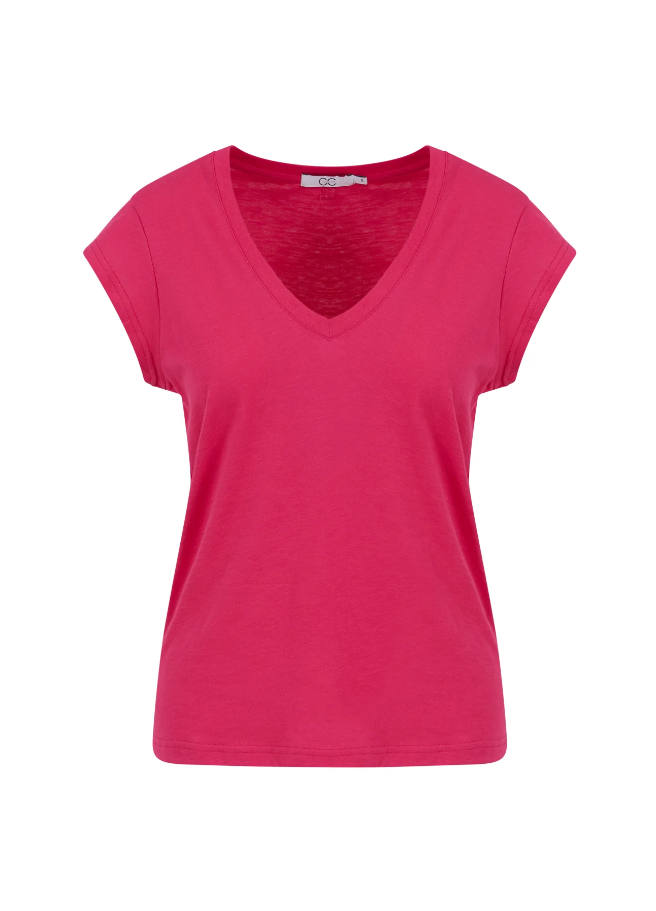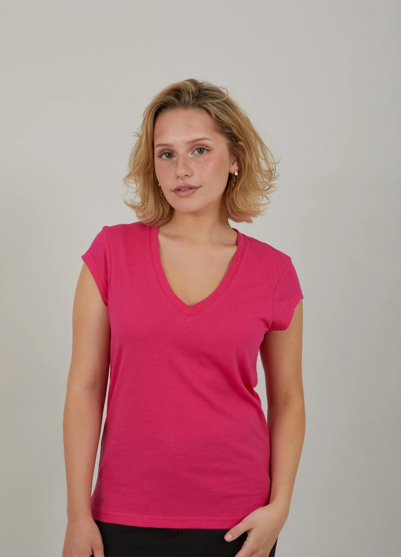 T-shirt in a sleek silhouette with dropped shoulders and a V-neck. Great basic t-shirt and perfect with bold or subtle, coloured pants, shorts or a printed skirt..