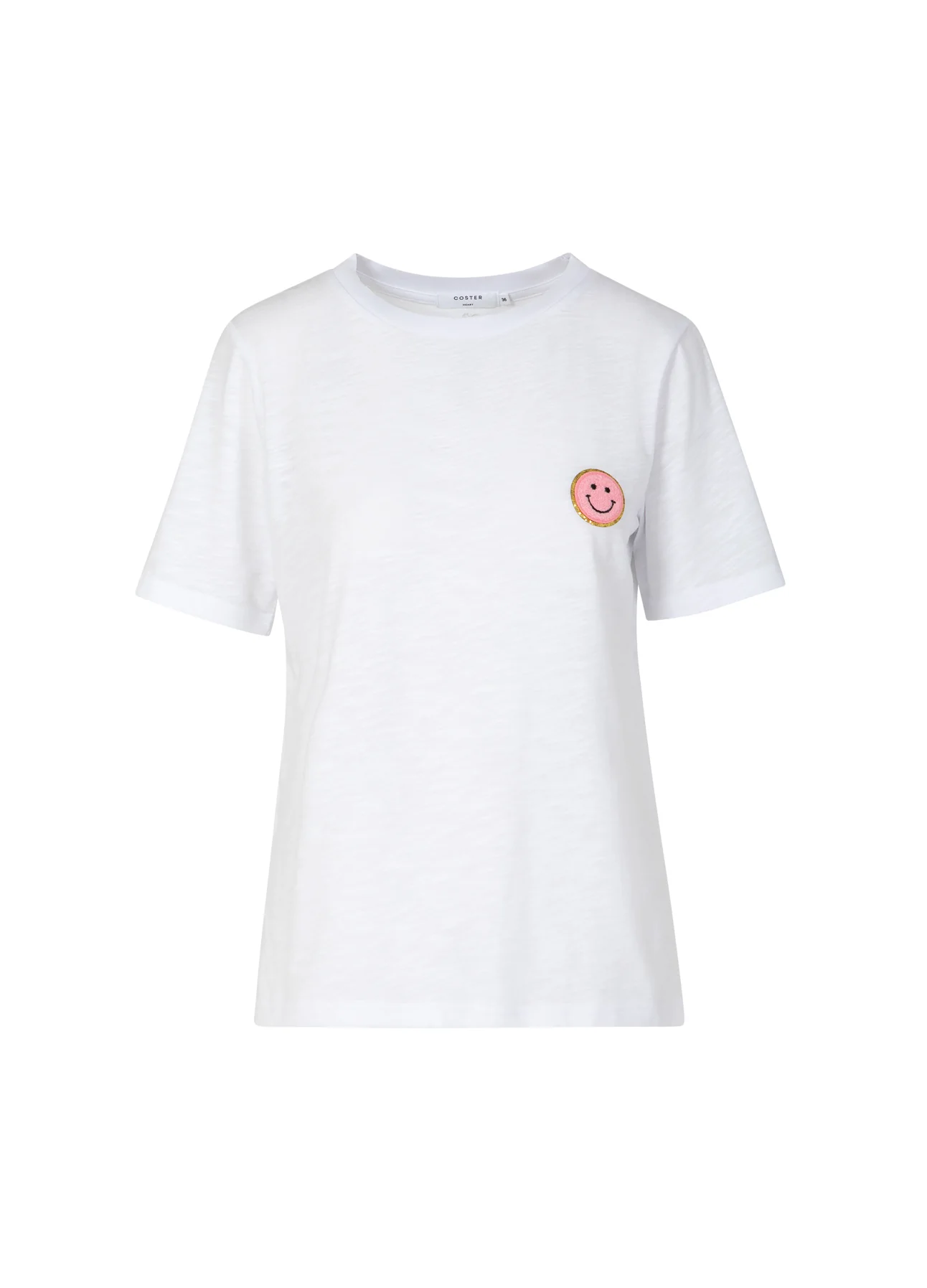 – Smiley badge op de borst