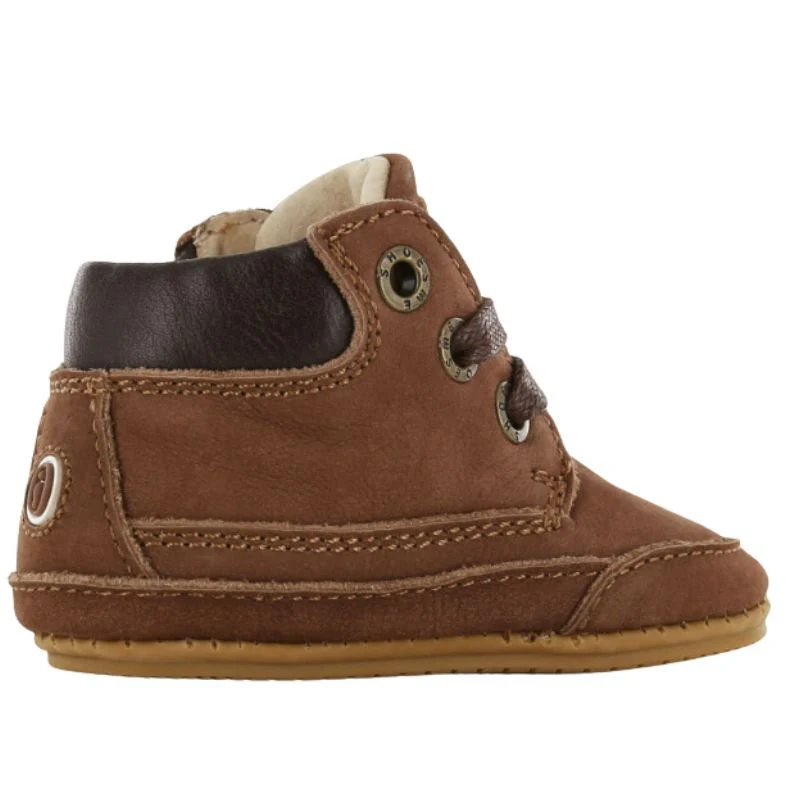 Cognac schoen Baby Proof van Shoesme. De schoentjes zijn licht en beschikken over een extreem flexibele zool met antislip voor een optimale voetontwikkeling. De schoen heeft bruin leer met donkerbruine details en vetertjes als sluiting. Het lichtgewicht geeft het schoentje extra comfort en gemak. Het schoentje is ook nog makkelijk te combineren met elk kledingstuk.