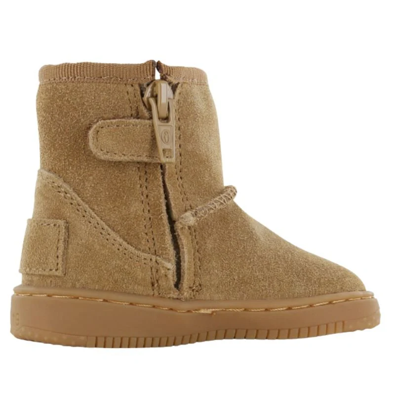 Cognac schoen Baby Proof van Shoesme. Deze boot bestaat uit hoogwaardig leer en een warme fluffy voering. Deze lichtgewicht boot heeft een flexibele zool, waardoor de voetjes gemakkelijk meebuigen. De boot heeft een bruin kleur en ugg look. Door het elastische gedeelte en de rits, trek je het schoentje gemakkelijk aan en uit.