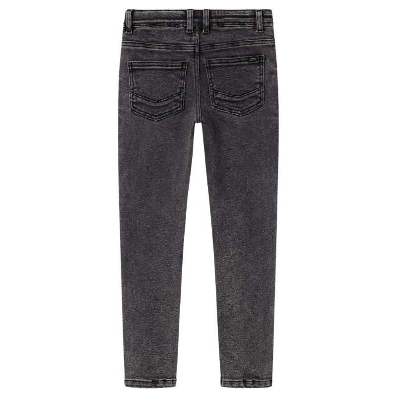Dark Grey Denim jeans Theo van Name It voor jongens. Deze broek is voorzien van voor- en achterzakken en knoop- met ritssluiting. De broek heeft een grijze wassing. Gemaakt van 64% katoen, 31% polyester, 3% viscose en 2% elastan. De broek is makkelijk te combineren en ook verkrijgbaar in het blauw.