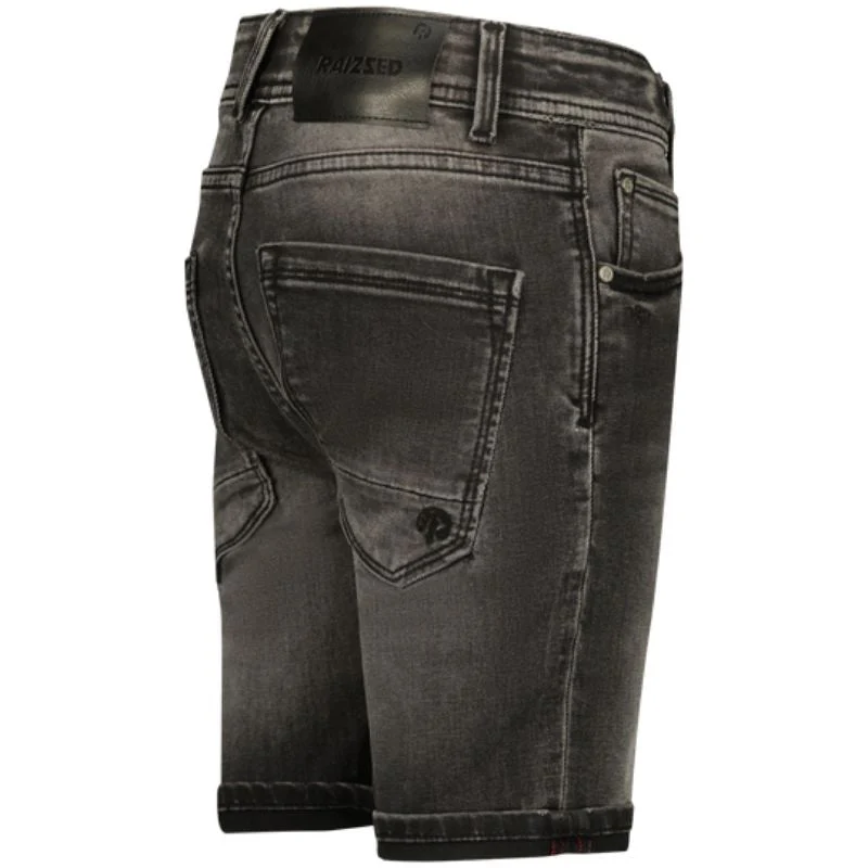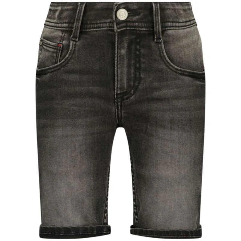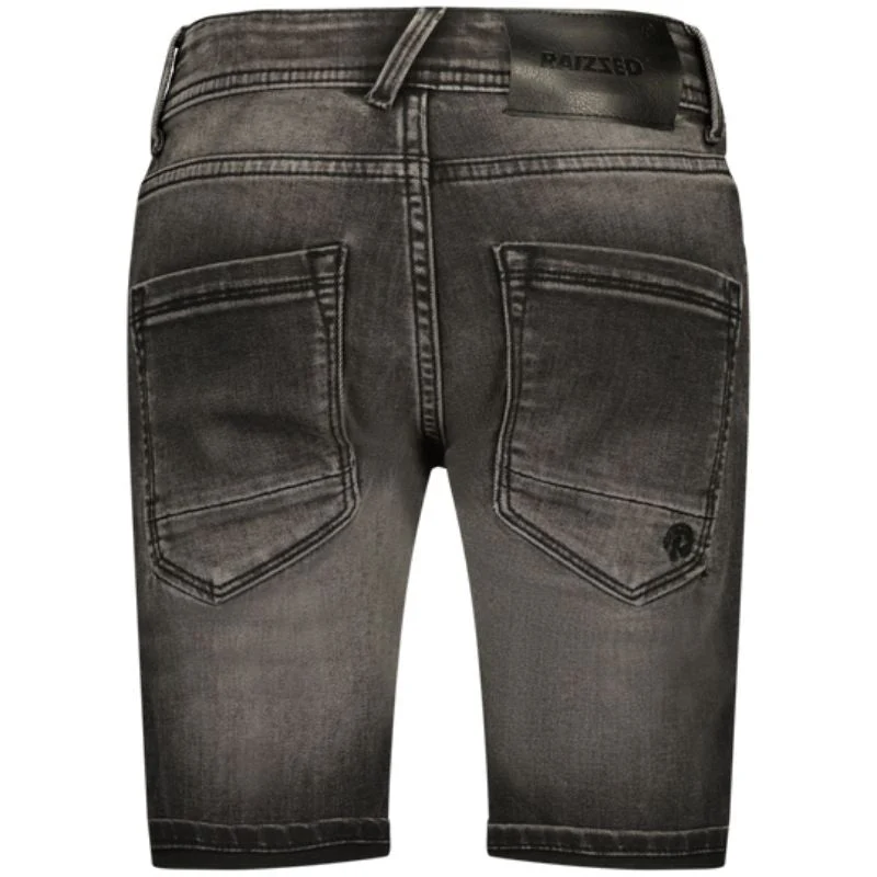 Dark Grey Stone short Oregon van Raizzed voor jongens. Deze trendy spijkershort is een absolute must-have voor zomerse dagen! Met een stijlvolle zwarte wassing en een speels, omgeslagen broekspijp straalt hij een casual en trendy vibe uit. De short is voorzien van handige riemlussen, zodat je hem perfect kunt stylen met je favoriete riem. Comfortabel, veelzijdig en perfect voor elke zomerse look!