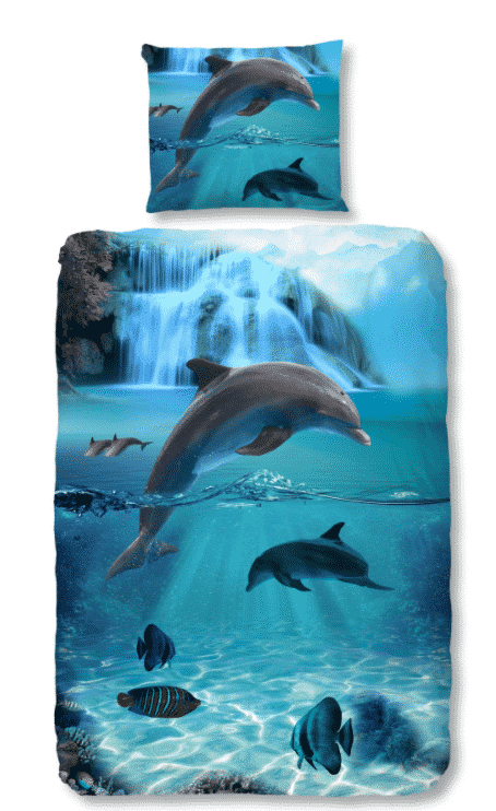 Een echt origineel dekbedovertrek met naam met dolfijnen.