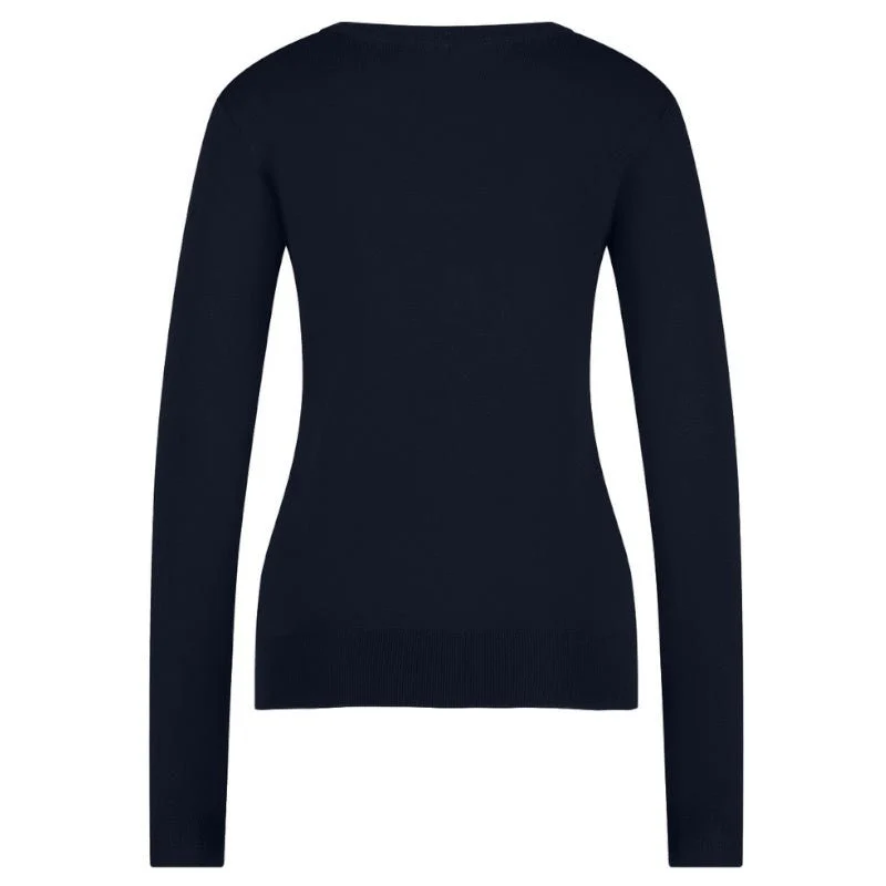 Donkerblauwe basic knit pullover Lana van Studio Anneloes. Deze tijdloze pullover is gemaakt van een comfortabele travel knit die zacht aanvoelt en mooi in model blijft. De ronde halslijn met ribboorden geeft de trui een verzorgde en klassieke uitstraling. Dankzij de regular fit valt het ontwerp soepel om het lichaam en draagt het prettig op verschillende momenten. De donkerblauwe kleur vormt een veelzijdige basis in iedere garderobe en laat zich gemakkelijk combineren met zowel lichte als donkere tinten.