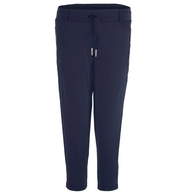 Donkerblauwe capri Carrie Basic van TQ Amsterdam voor dames. Deze capri heeft een moderne, veelzijdige uitstraling en biedt maximaal comfort door de zachte en rekbare travel stof. Het design met elastische tailleband en rechte pijpen zorgt voor een perfecte pasvorm. Verkrijgbaar in drie kleuren, ideaal voor een casual of sportieve look tijdens warme dagen.