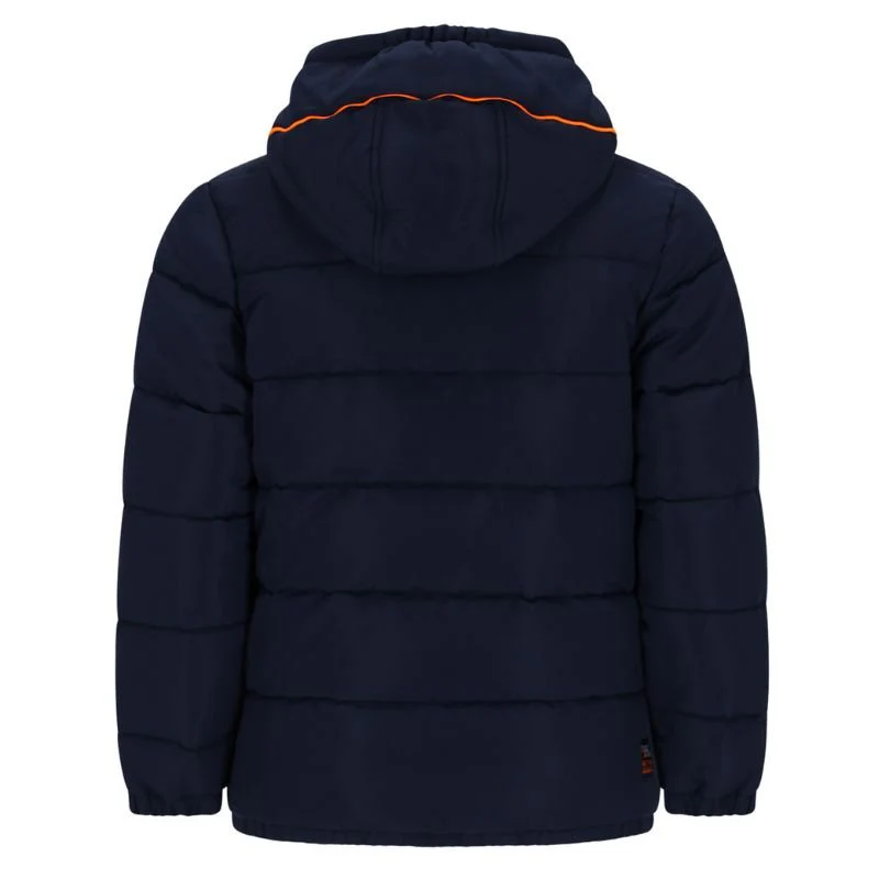 Donkerblauwe jacket Jix van Tygo & Vito voor jongens. Deze stoere pufferjas krijgt een sportieve uitstraling door de felgekleurde ritsen en het subtiele borduursel. Met vaste capuchon en reflecterende badge op de mouw is hij zowel praktisch als trendy. De fleece voering in body en zakken zorgt voor warmte en comfort. Gemaakt van waterafstotend, 100% gerecycled polyester.