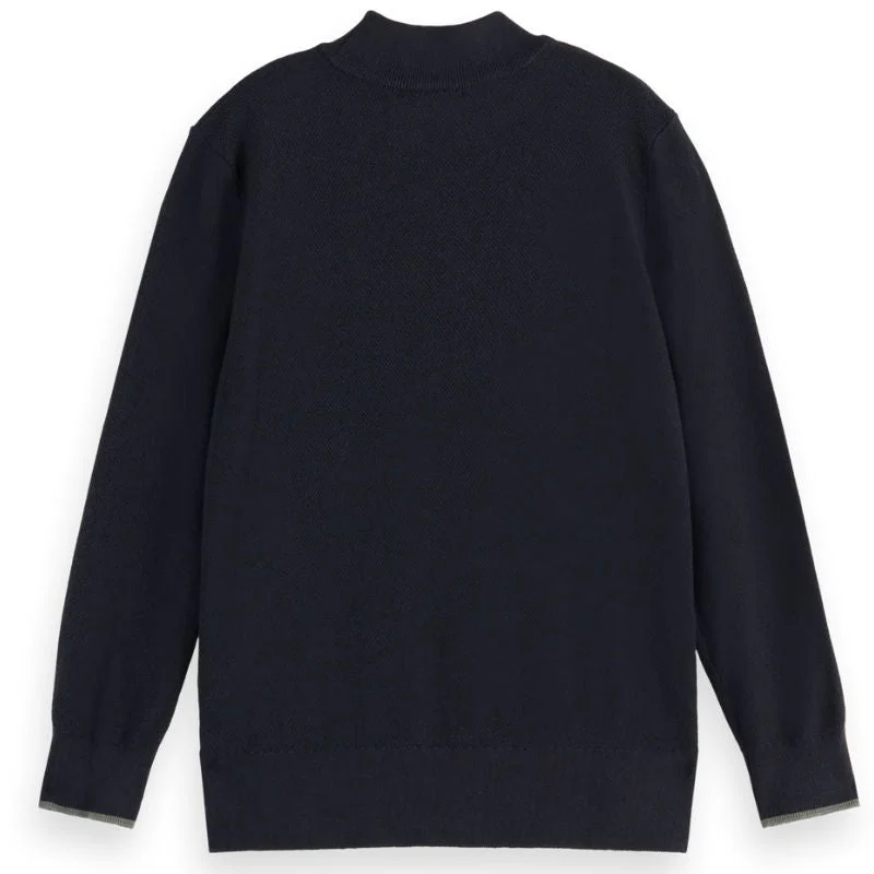 De donkerblauwe mock neck pullover regular fit van Scotch & Soda voor jongens is perfect voor school, familiebijeenkomsten of een dag in de stad. Een veelzijdige en elegante trui die comfort en stijl moeiteloos weet te combineren.