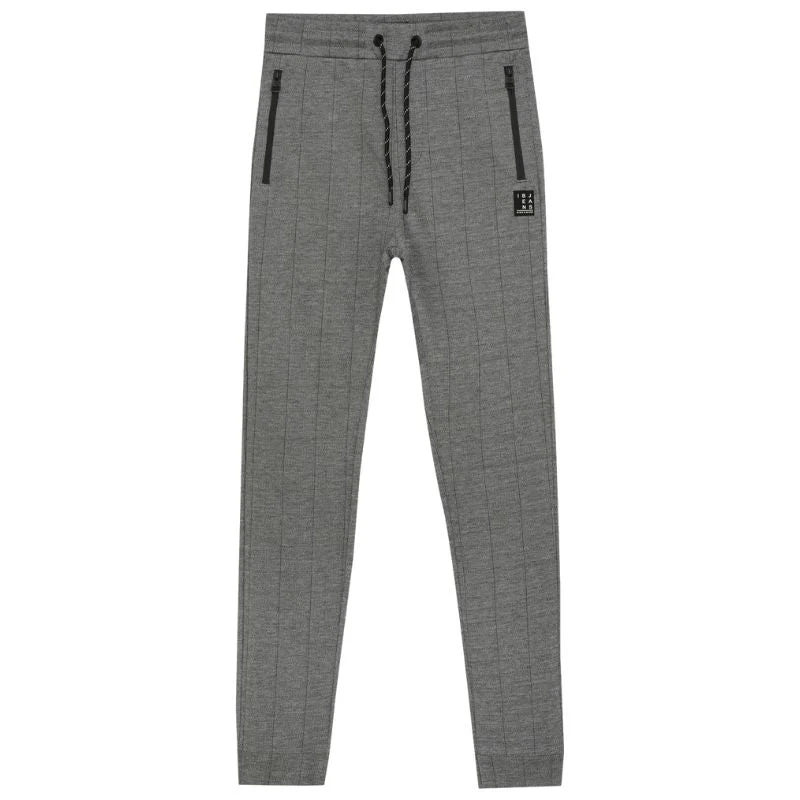 Grijze jogpant Zip van Indian Blue Jeans voor jongens. Deze broek is voorzien van een relaxed fit en praktische ritszakken aan de voorkant, met nette zakken aan de achterkant voor een verzorgde uitstraling. Het geruite patroon geeft een moderne en stijlvolle touch, waardoor de broek perfect is voor zowel ontspannen momenten als een slimme dagelijkse look. Gemaakt van een comfortabele mix van 70% polyester, 25% viscose en 5% elastaan.