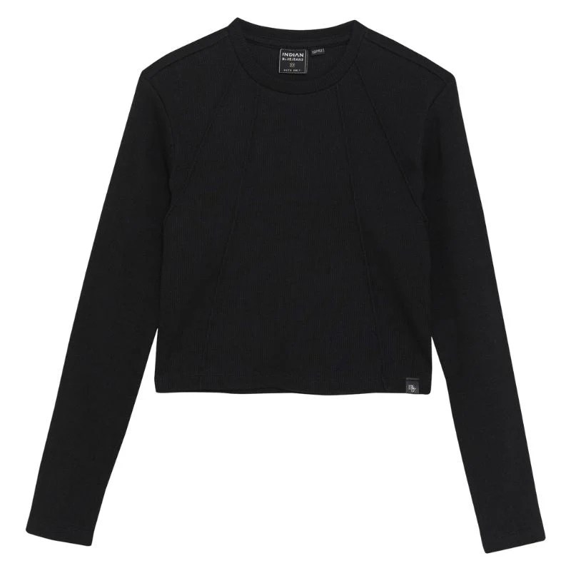 Donkergrijze sportieve longsleeve Sport van Indian Blue Jeans voor meisjes. Deze trendy top in de kleur Phantom is een ideale basic met een moderne twist. Het model heeft lange mouwen, een ronde hals en een sportieve uitstraling die gemakkelijk te combineren is met jeans, shorts of leggings. De diepe grijstint maakt de top veelzijdig en tijdloos, waardoor hij in elke garderobe past.