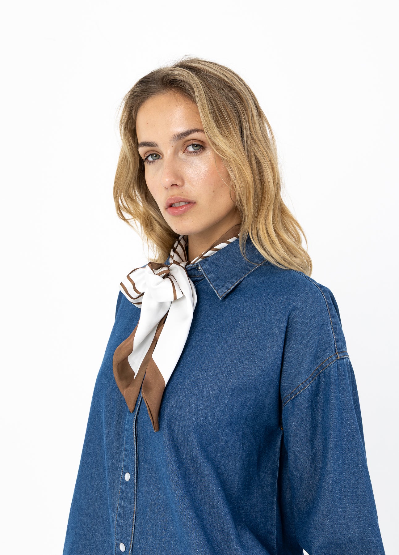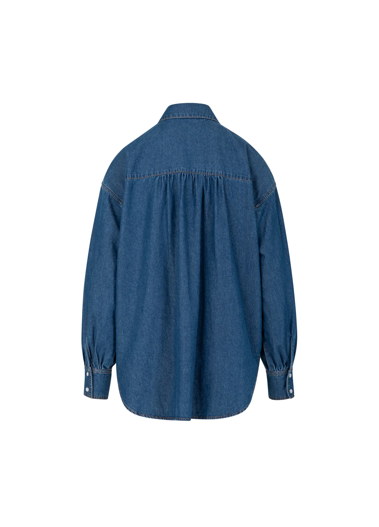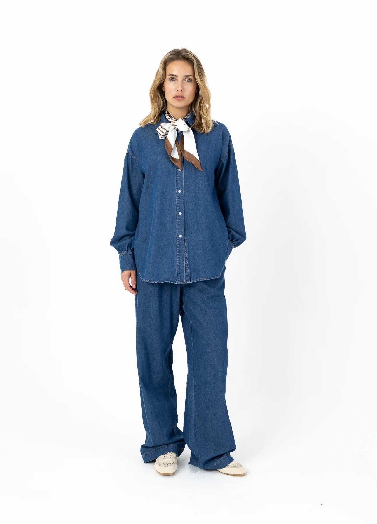 Het model is 173 cm lang en draagt maat S. Ze heeft een borstomtrek van 84 cm, een tailleomtrek van 65 cm en een heupomtrek van 96 cm.