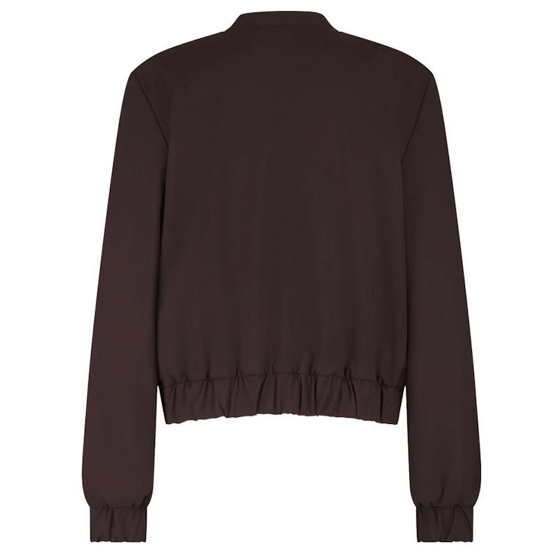 Espresso travel jacket Benja bomber van Studio Anneloes voor dames. Een stijlvolle musthave die warmte en elegantie toevoegt aan je garderobe. Dit bomberjack is uitgevoerd in stevige Heavy Travelstof, bekend om het ademend vermogen, de comfortabele stretch en de kreukvrije kwaliteit. Ideaal voor onderweg, een werkdag of een etentje.