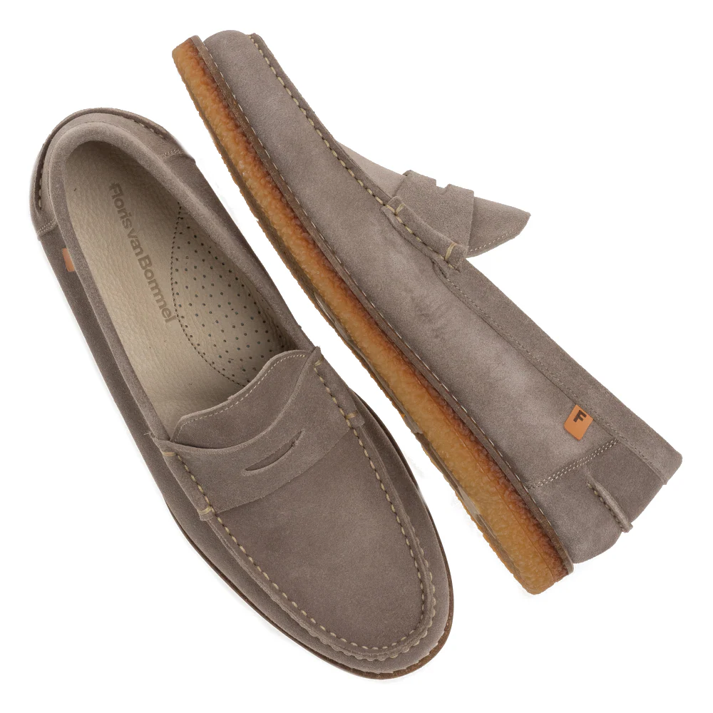 Deze lichtbruine instappers van Floris van Bommel zijn gemaakt van dik, hoogwaardig suède zonder voering, wat zorgt voor een extra soepele pasvorm en een zomerse, natuurlijke uitstraling. Het ontwerp zonder voering doet op geen enkele manier onder voor schoenen met voering, maar biedt juist een verfijnder gevoel. De zool van TR-materiaal met de uitstraling van een crêpezool, compleet met een lederen zoolrand en een groot Floris van Bommel-logo, maakt het plaatje compleet. Het donkerblauwe bovenwerk en het lichtcognackleurige lederen labeltje met de gelaserde F maken deze instappers niet alleen comfortabel maar ook onmiskenbaar modieus.
