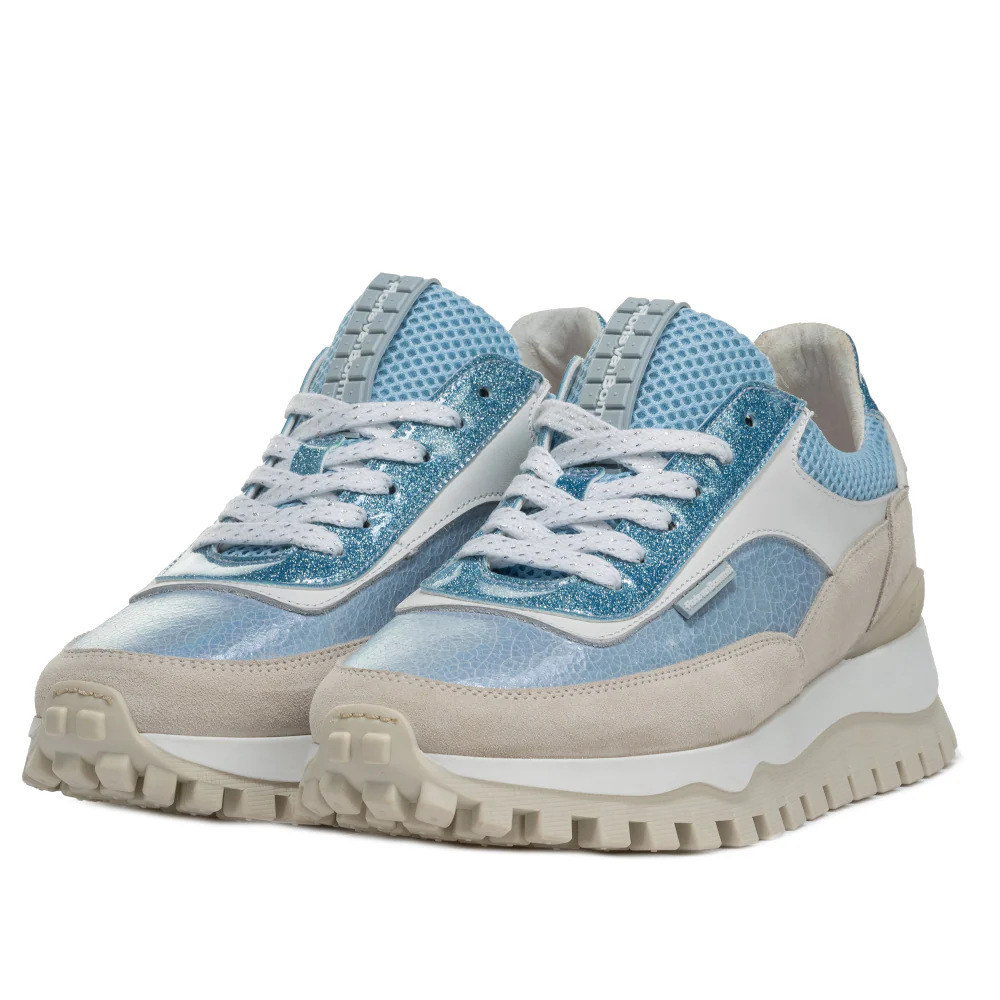 De Floris van Bommel SFW-10100-42-01 Licht Blauw sneakers zijn een ware traktatie voor je voeten. Met een sportieve zool die kenmerkend is door het unieke blokjespatroon, bieden deze schoenen niet alleen uitstekende grip, maar ook een opvallende look. Het gebruik van verschillende blauwtinten in het bovenwerk zorgt voor een dynamisch en veelzijdig ontwerp, terwijl de rubberen inzetten op de hiel en tong, versierd met subtiele Floris van Bommel logo’s, het luxe gevoel van de schoen benadrukken. De kwalitatief hoogwaardige lederen voering en het comfortabele, uitneembare voetbed maken deze sneakers ideaal voor dagelijks gebruik.