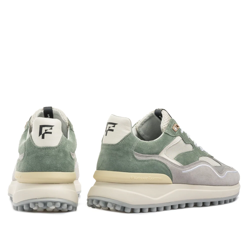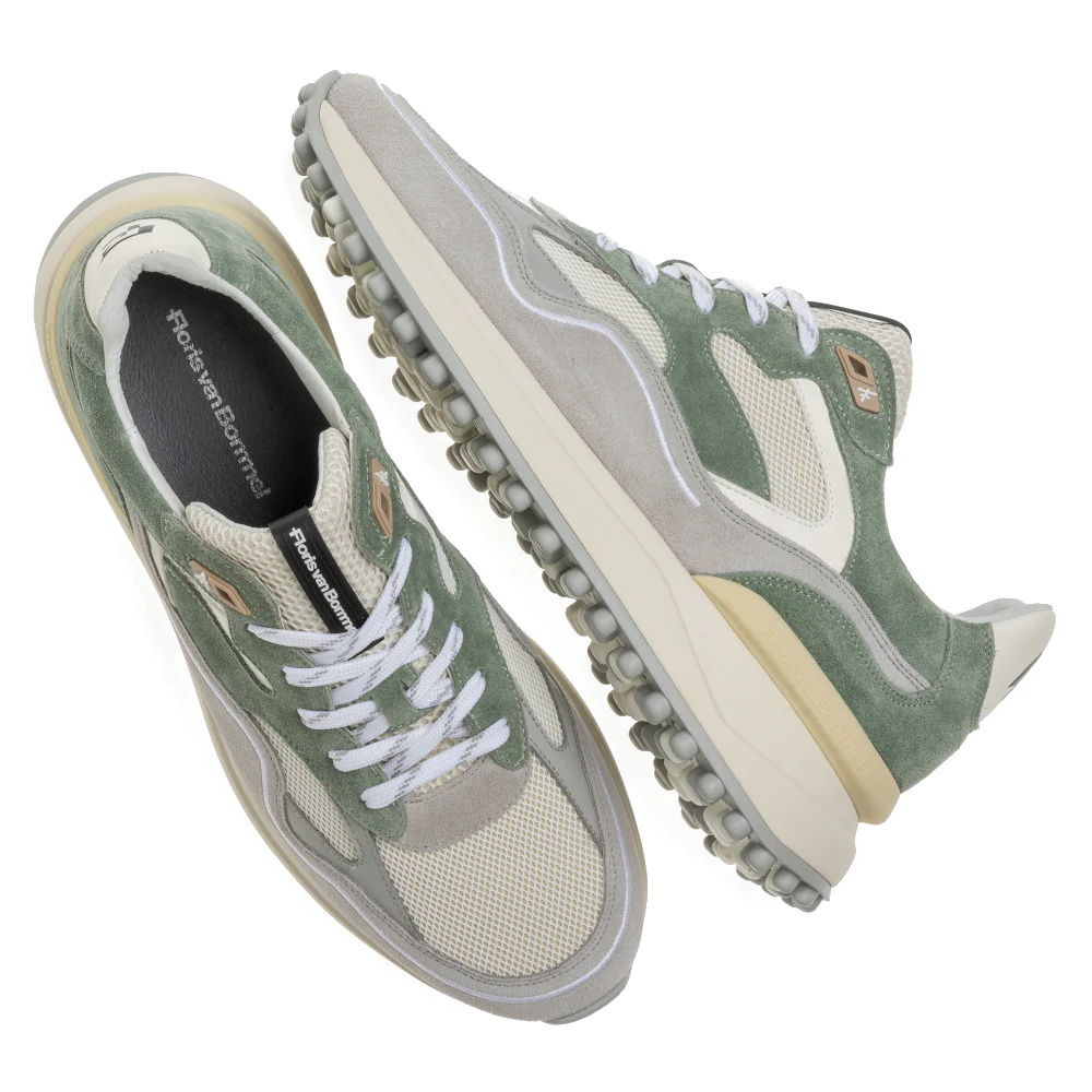 De Floris van Bommel Veterschoenen SFM-10159-50-04 Groen zijn een toonbeeld van vakmanschap en stijl. Deze schoenen, uit de Noppi collectie, zijn vervaardigd uit een rijke mix van materialen, waaronder sportieve mesh op de tong en een lichtgewicht EVA materiaal voor het off-white deel van de noppenzool. Het loopvlak is gemaakt van duurzaam TPU materiaal, terwijl de stabilizer bij de hiel het herkenbare Floris van Bommel logo draagt. De binnenzijde is afgewerkt met een hoogwaardige lederen voering en een uitneembaar voetbed, wat zorgt voor ongekend comfort.