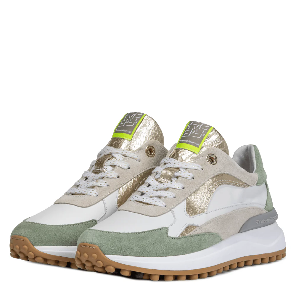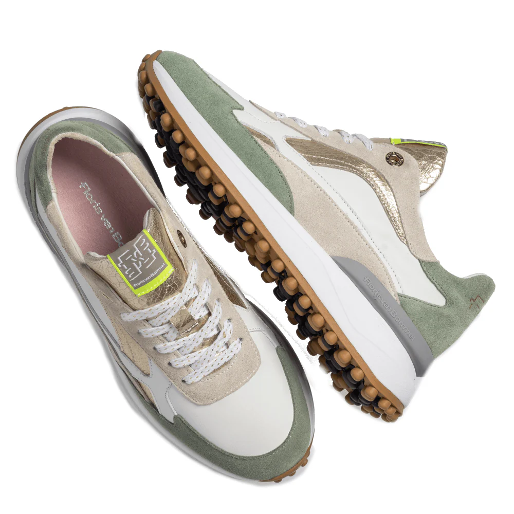 Maak kennis met het toppunt van stijl en comfort: de Floris van Bommel Noppi veterschoenen in het groen. Deze moderne klassieker combineert een eigentijds design met het ongeëvenaarde comfort dat je van Floris van Bommel mag verwachten. Met een lichtgewicht zool, voorzien van een uniek noppenpatroon met een kleurrijk detail, onderscheidt deze schoen zich meteen. Het vakmanschap is terug te zien in elk detail, van de hoogwaardige lederen voering tot het uitneembare voetbed. Deze mix van functionaliteit en stijl maakt de Noppi sneaker tot een essentieel onderdeel van elke garderobe.