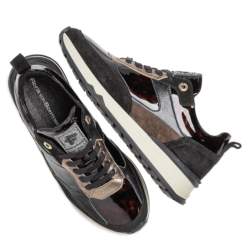 De Floris van Bommel Veterschoenen SFW-10102-92-01 in brons zijn het toonbeeld van elegantie gecombineerd met een sportieve touch. Met een bovenwerk dat een harmonieuze mix is van brons lakleer, suède met een glanseffect en leer, onderscheidt deze sneaker zich meteen van de rest. De sportieve en lichtgewicht zool, voorzien van de kenmerkende Floris van Bommel zigzag elementen, geeft niet alleen een uniek uiterlijk maar zorgt ook voor een aangenaam loopcomfort. De zorgvuldig aangebrachte details, zoals het textielen label met het Floris van Bommel logo op de tong, tillen het ontwerp naar een hoger niveau. Bovendien is de sneaker uitgerust met een kwalitatieve voering en een uitneembaar voetbed, wat de schoen geschikt maakt voor iedereen die waarde hecht aan comfort en stijl.