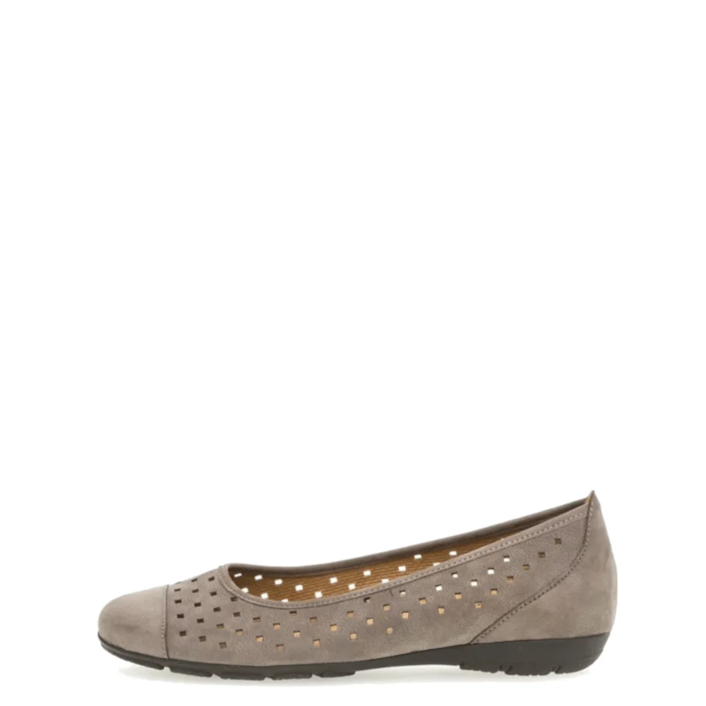 Ontdek het ultieme comfort en een tijdloos design met de Gabor Instappers 24.169.19 in de kleur taupe. Deze elegante ballerina’s zijn vervaardigd uit hoogwaardig nubuck leer dat een stijlvolle look belooft en een ongeëvenaard draagcomfort biedt. De flexibele rubberzool staat garant voor flexibiliteit en stevigheid bij elke stap. De unieke vierkante perforatie gaatjes zorgen niet alleen voor een modieuze twist, maar bieden ook een aangenaam luchtig gevoel op warmere dagen. Kortom, deze instappers zijn de perfecte mix van stijl en comfort.