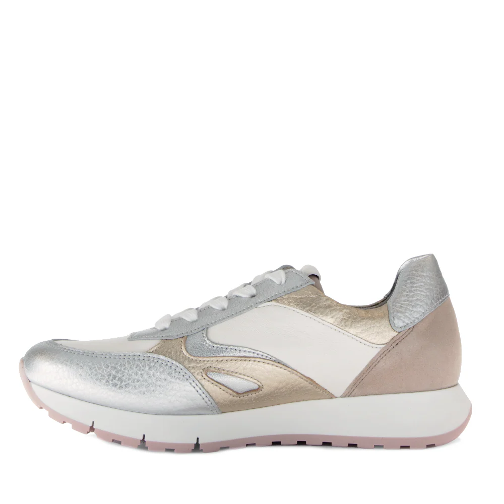Wist je dat: zilveren schoenen niet alleen een gewaagde modetrend zijn, maar ook verrassend veelzijdig? Ze kunnen een simpele outfit omtoveren tot een opvallende verschijning. Dat is zeker het geval met de Gabor Veterschoenen 62.488.21 Zilver.