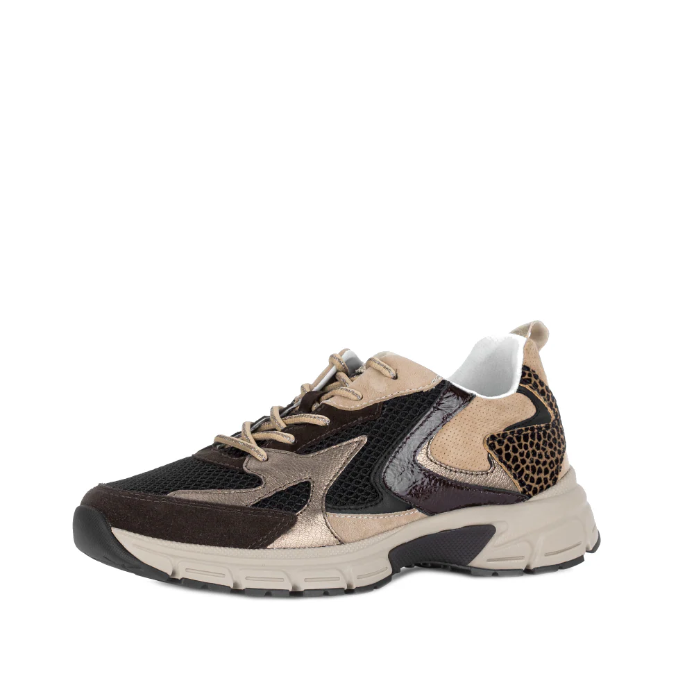 Ontdek de veelzijdigheid van deze Gabor veterschoenen en maak je outfit compleet met hun elegante ontwerp. Ze zijn gemaakt van leer en suède, wat zorgt voor een premium gevoel dat lang meegaat. – Gemaakt van leer en suède voor een stevige en comfortabele pasvorm – Met een tijgerprint op de hiel voor een unieke en trendy uitstraling – Eenvoudig te verstellen dankzij de veters, zodat ze perfect aansluiten – Beschikbaar in zwart voor een tijdloze en veelzijdige look Deze schoenen zijn niet alleen praktisch voor alledag, maar voegen ook een leuke twist toe aan je garderobe, zodat je met plezier de deur uitgaat. Bij Donelli vind je ze in verschillende maten, klaar om je favoriete paar te worden en je stappen stijlvol te ondersteunen. Ze passen perfect bij wie op zoek is naar schoenen die zowel functioneel als fashionable zijn.