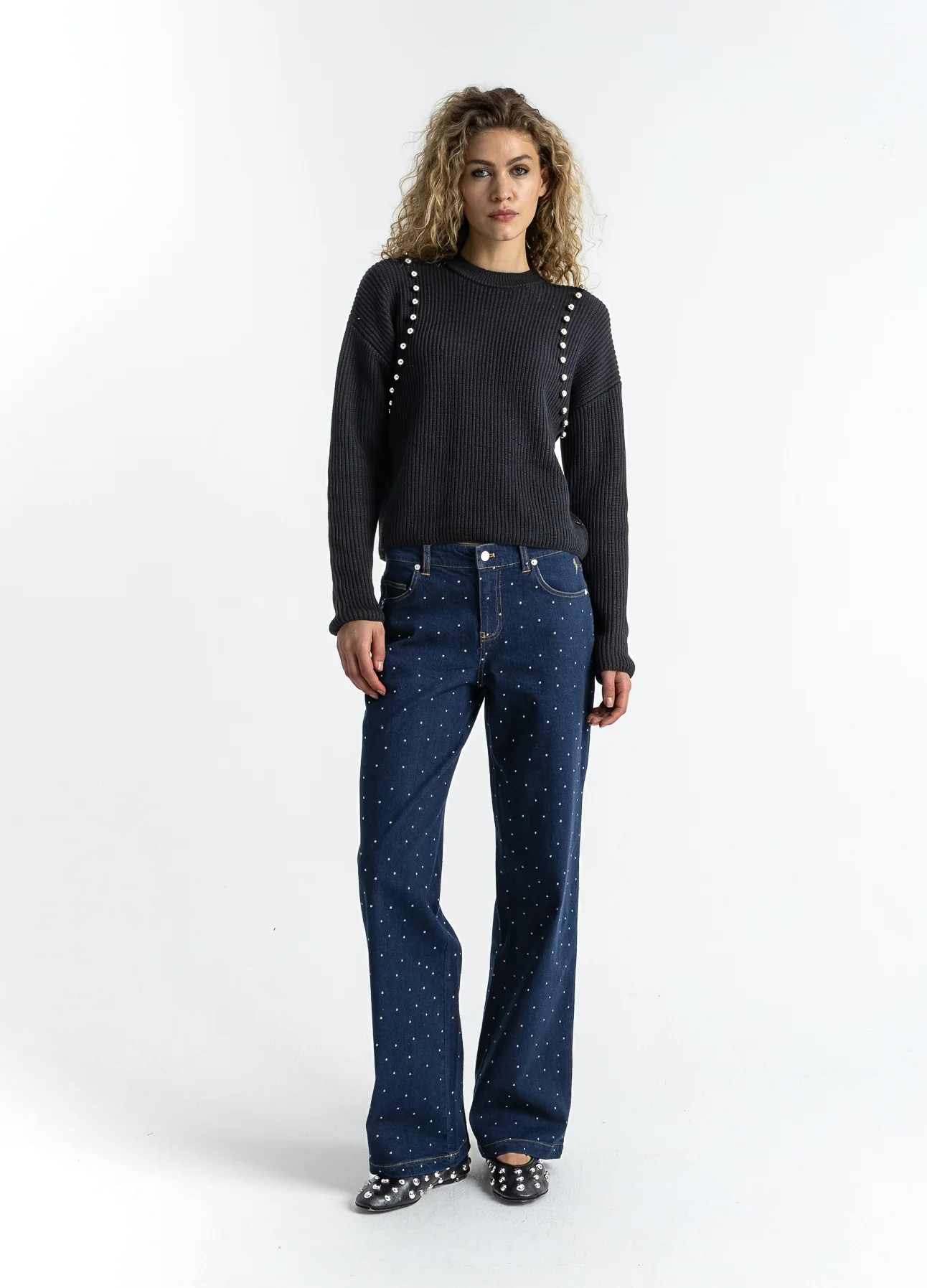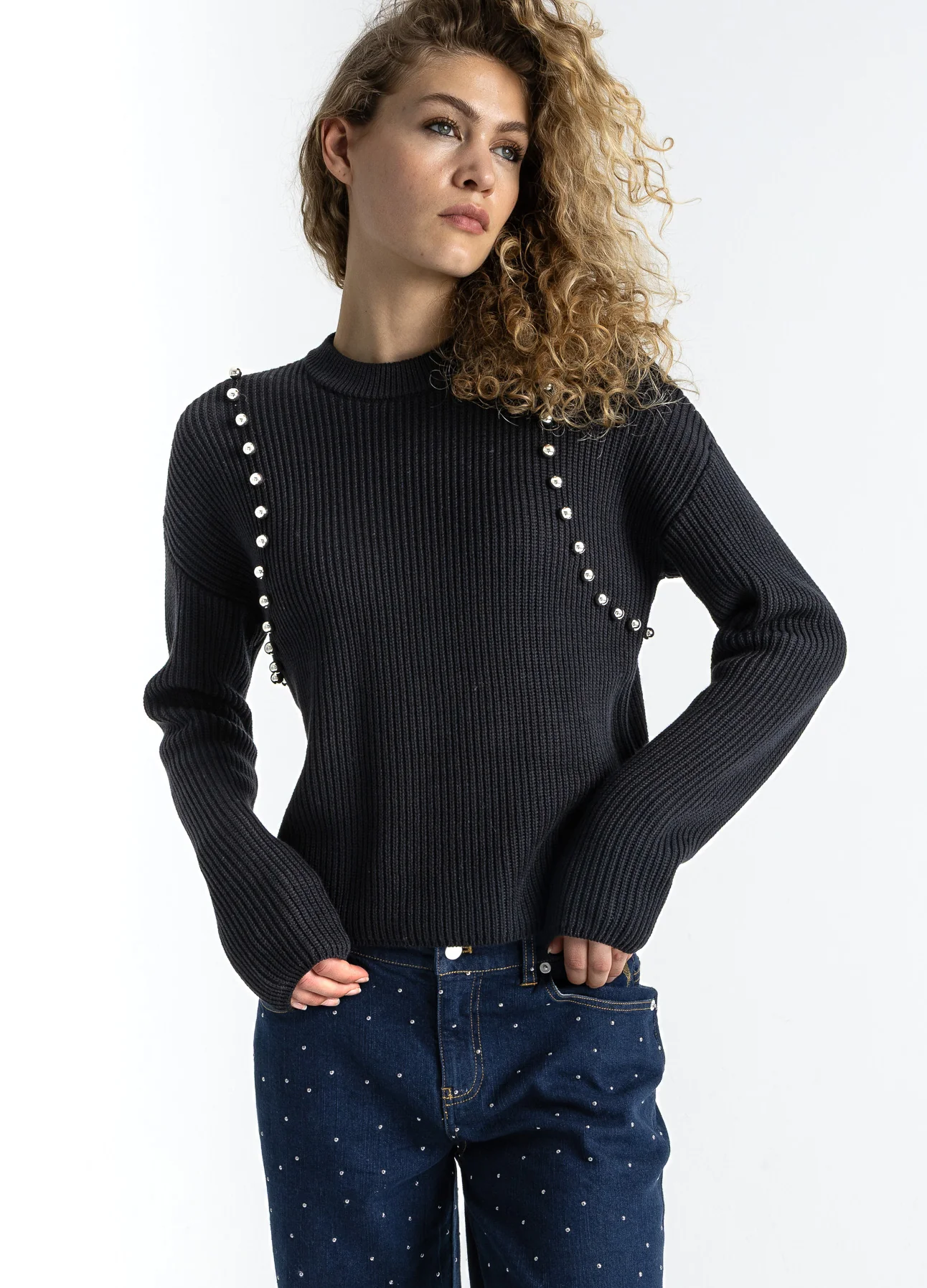 GEBREID MET ZILVEREN KRALEN – Black