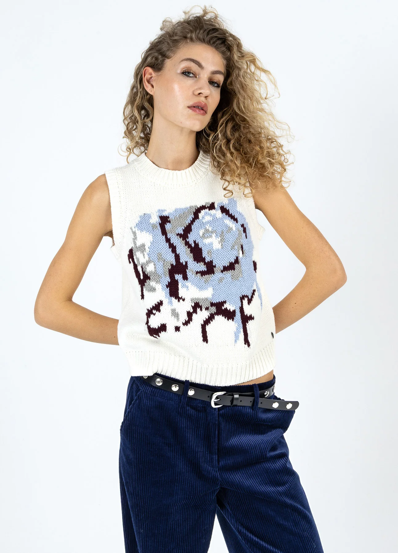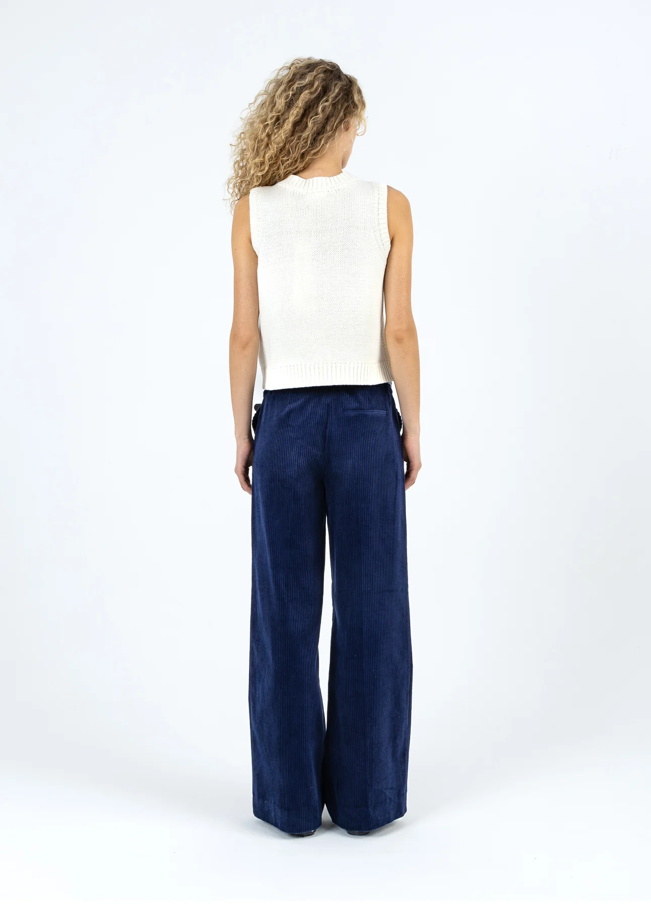 Het model is 182 cm lang en draagt maat S. Haar buste is 82 cm, taille 61 cm en heupen 93 cm.