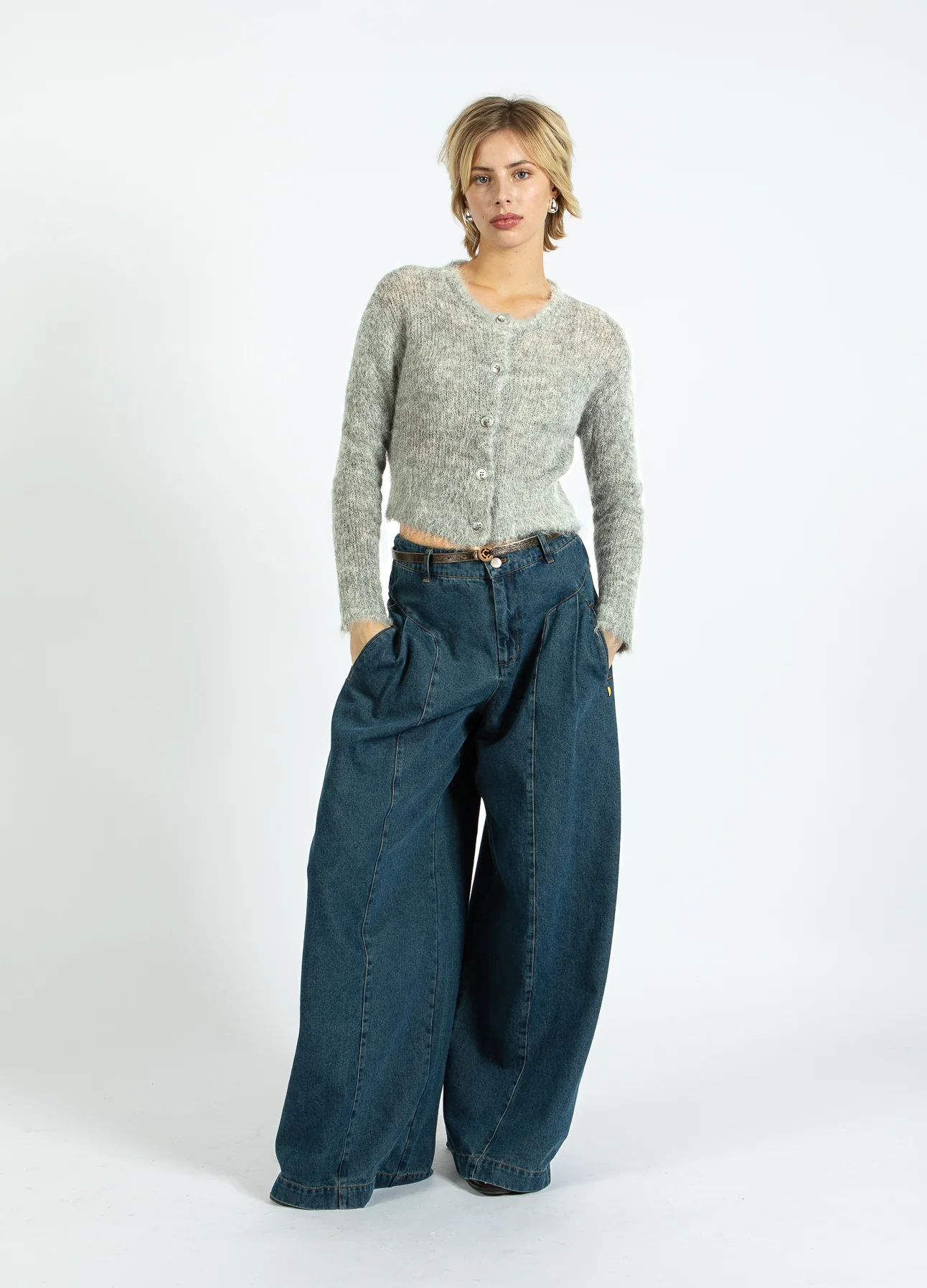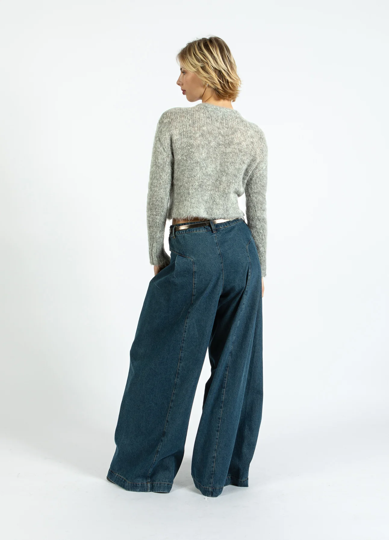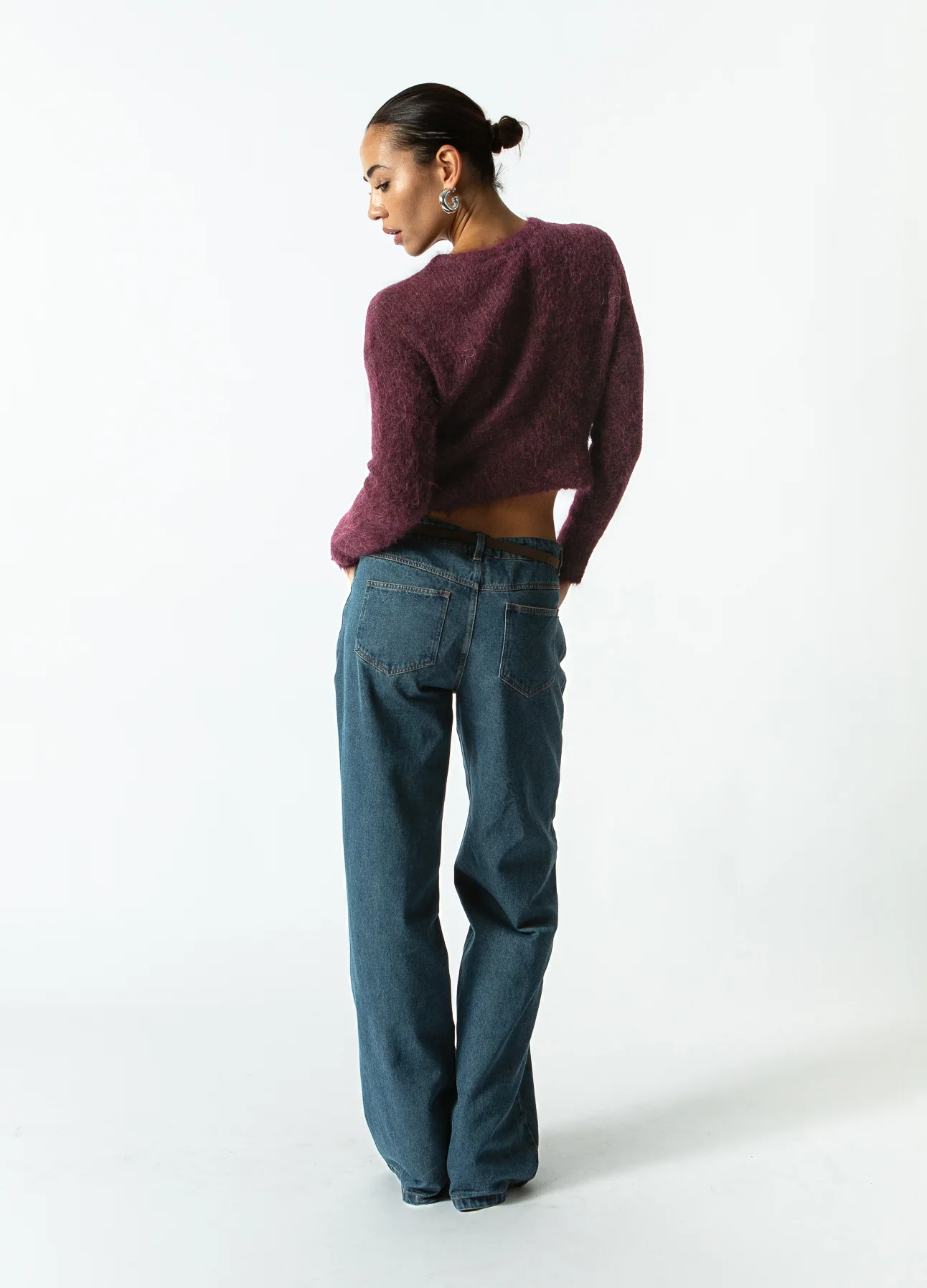 Het model is 173 cm lang en draagt maat S. Ze heeft een borstomtrek van 84 cm, een tailleomtrek van 65 cm en een heupomtrek van 96 cm.