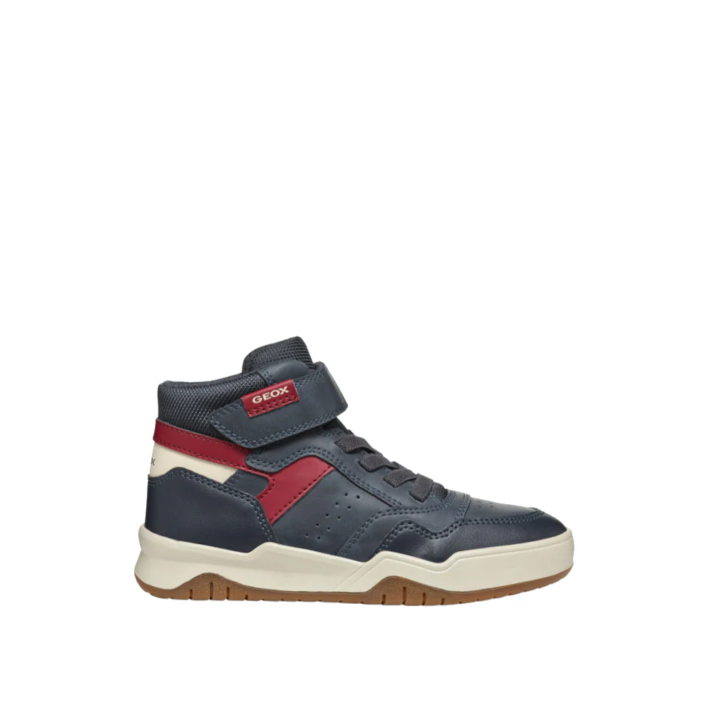 De Geox Perth veterschoenen zijn een populaire keuze voor jongens die houden van een sportieve look. Dit model is een halfhoge sneaker met een trendy basketballook, uitgevoerd in een marineblauwe en donkerrode kleurstelling die moeiteloos past bij casual outfits. Gemaakt van nylon en een materiaal met gewaxt leereffect, biedt hij een lichte en ademende constructie die ideaal is voor actieve kinderen. Met een combinatie van klittenbandsluiting en vetersluiting zorgt hij voor een eenvoudige en veilige pasvorm, perfect voor dagelijks gebruik. Deze schoenen zijn ontworpen om indruk te maken met hun aantrekkelijke design, terwijl ze praktisch en comfortabel blijven, wat ze een must-have maakt in de collectie van Donelli.